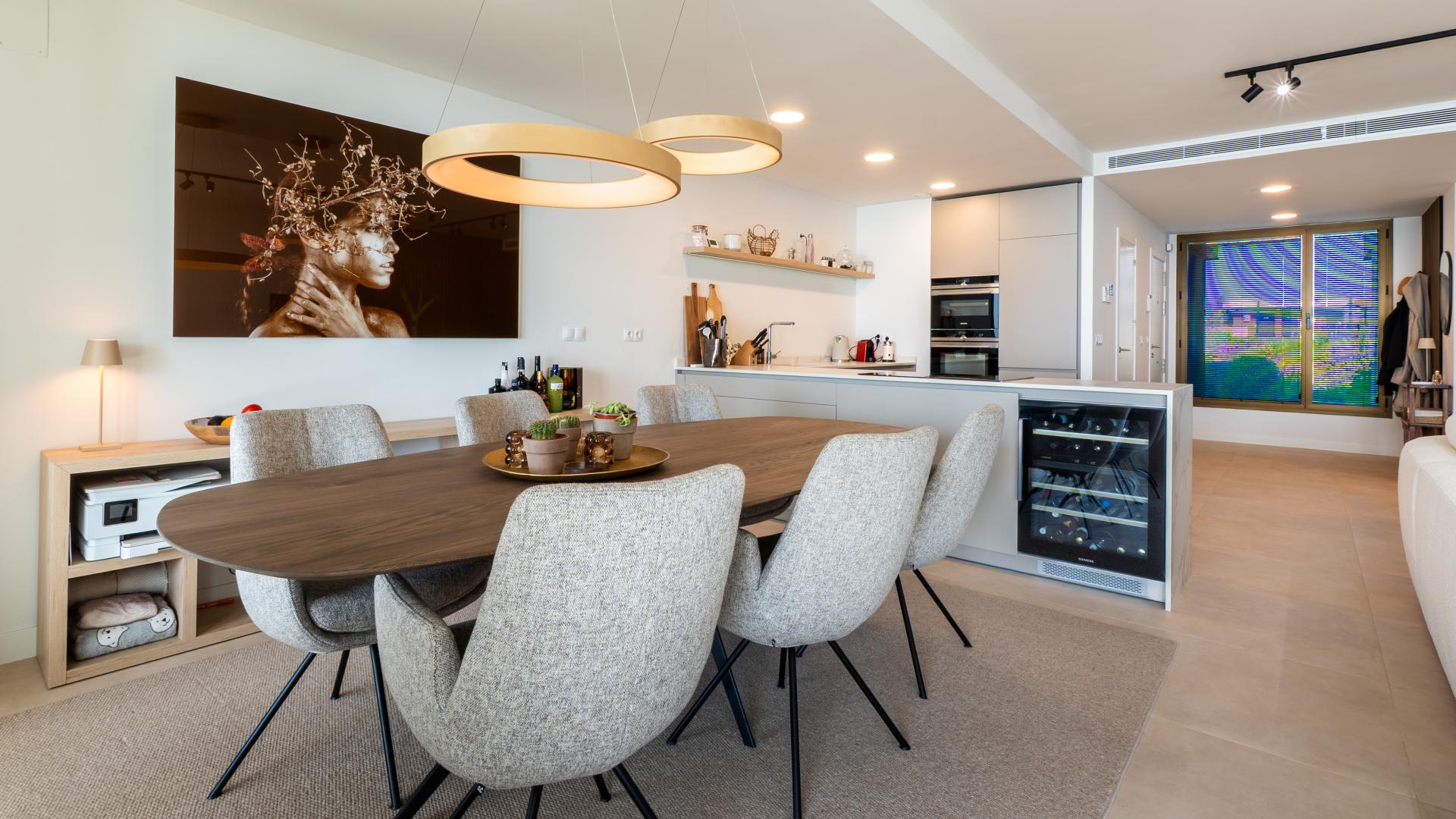 Denne bolige, orientering syd, har følgende faciliteter: privat terrasse, køkken udstyret, tæt på butikker, tæt på byen, tæt på havn, tæt på skoler, havudsigt, overvågningskameraer, vaskerum, overdækket terrasse, elektriske persienner, indbyggede skabe, aerothermics, indhegnet boligområde, udsigt til haven, panoramaudsigt, bekvemmeligheder i nærheden af, transport i nærheden, aircondition, fuldt møbleret, fuldt udstyret køkken, bryggers, tæt på havet / stranden, tæt på golf, closetorestaurants, uafdækket terrasse, coworkingspace, glasdøre, opbevaringsrum, gym, Åbent køkken, alarm, sikkerhedsindgang, dobbeltvindue, video indgang, helt ny og fremragende stand.