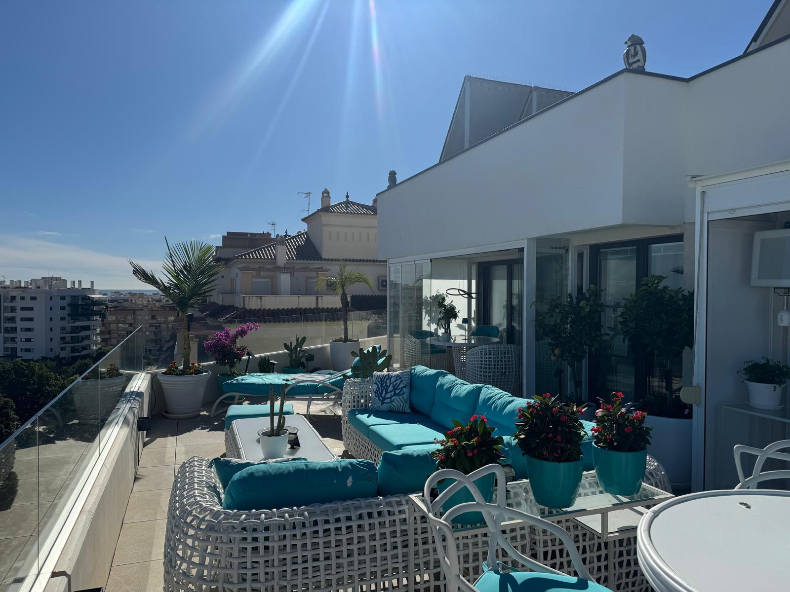 Penthouse til salg i Estepona Centre, Estepona Town med 2 Soveværelser, 2 Badevær., 1 en-suite bathroom, bilt i 2022 og har pool () og garage (). Dimensioner: 140m² bolig og 74m² terrase.