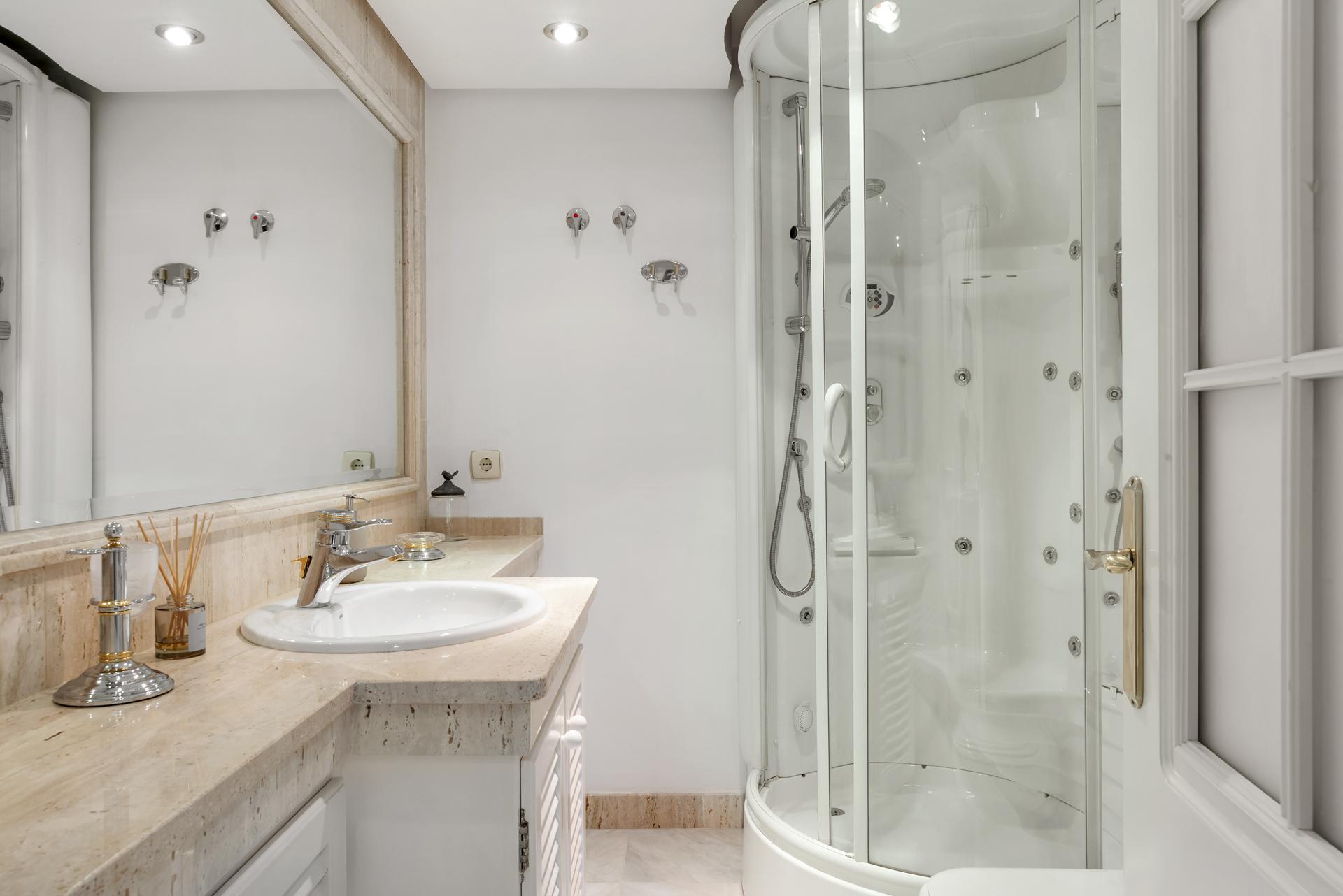 Byhus til salg i Golden Mile, Marbella Golden Mile med 3 Soveværelser, 3 Badevær., bilt i 1997 og har pool (), garage () og have (). Dimensioner: 140m² bolig og 25m² terrase.