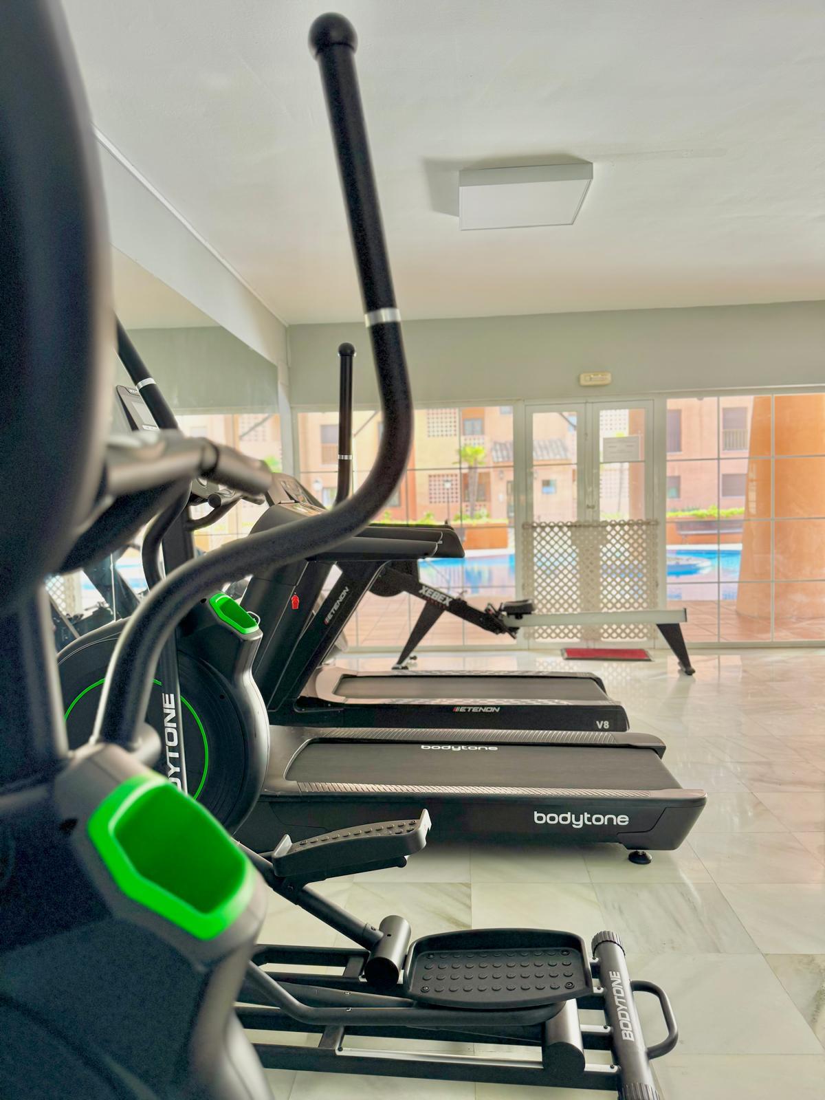 Denne bolige, orientering øst, har følgende faciliteter: privat terrasse, køkken udstyret, tæt på butikker, tæt på byen, tæt på skoler, opvarmet pool, dolby stereo surround-system, overdækket terrasse, indbyggede skabe, indhegnet boligområde, elevator, udsigt til haven, udsigt til poolen, tennis / padlebane, bekvemmeligheder i nærheden af, transport i nærheden, aircondition, fuldt møbleret, fuldt udstyret køkken, bryggers, ildsted, sauna, tæt på golf, gym, video indgang og fremragende stand.
