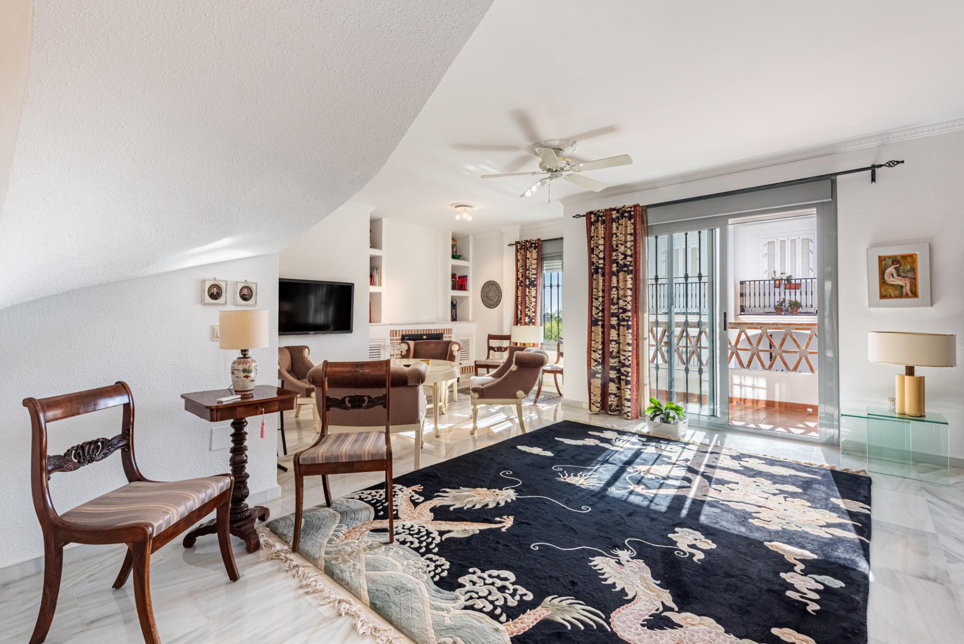 Semi-fritliggende hus til salg i Mijas Pueblo, Mijas med 3 Soveværelser, 2 Badevær., 1 en-suite bathroom, 1 toilet, bilt i 1989 og har garage () og have (). Dimensioner: 366m² bolig, 350m² grund, 182m² areal og 91.6m² terrase.