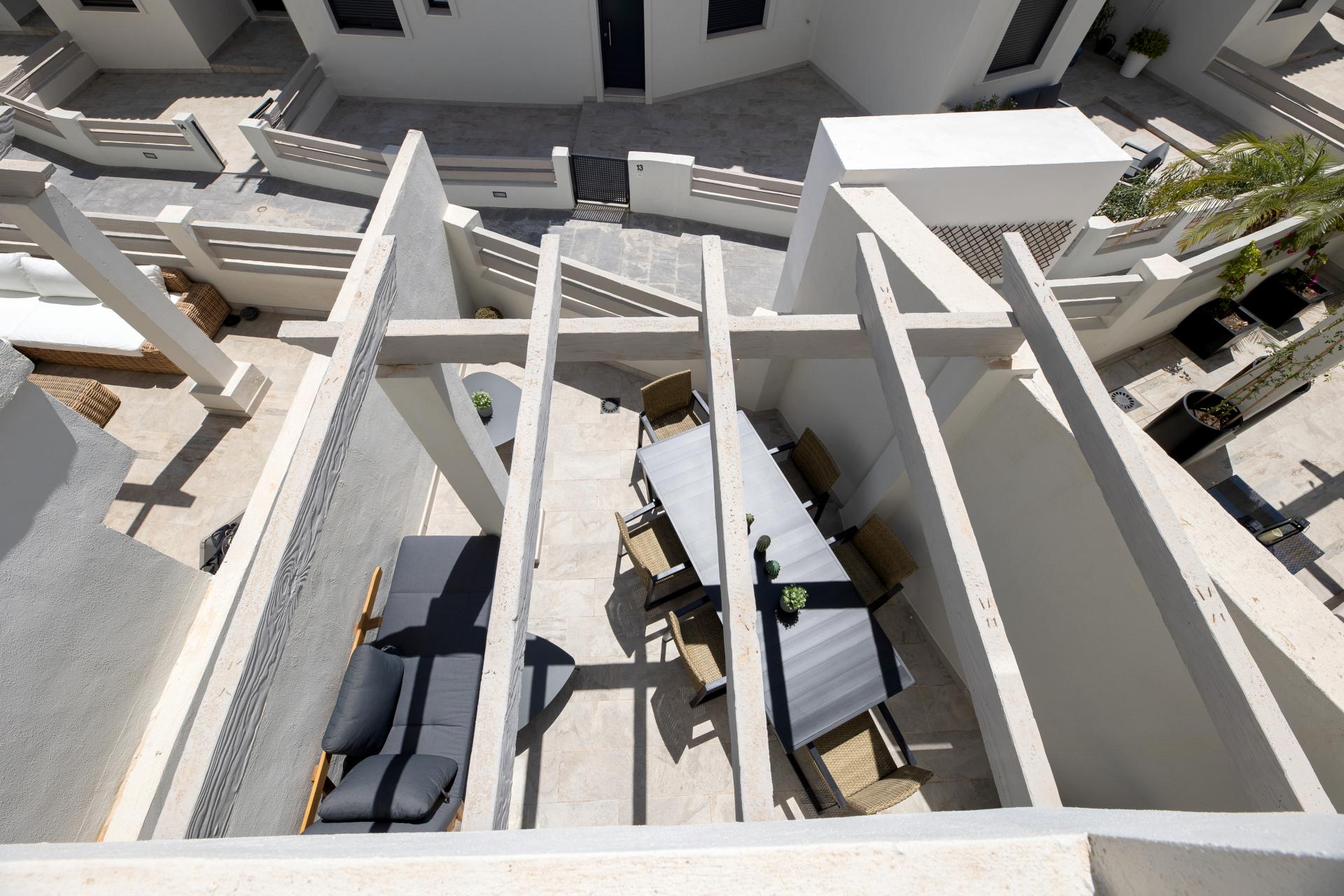 Radhus till salu och hyra i Agra Residencial, Estepona Öst med 3 sovrum, 3 badrum och har Pool (gemensam), garage (privat) och trädgård (privat). Mått: 178m² byggd, 138m² interiör och 40m² terrass.