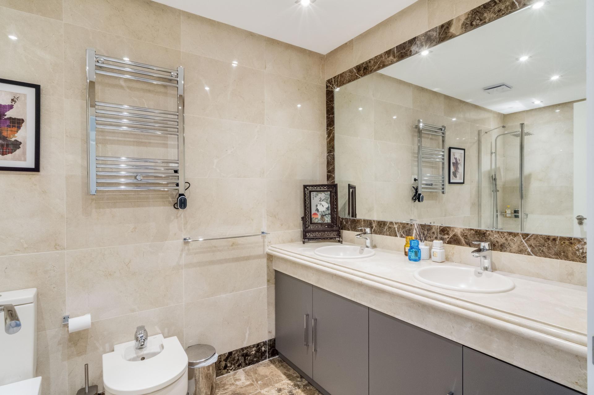 Estepona Golf och den prestigefyllda Finca Cortesín ligger i närheten, medan stränderna och den livliga stadskärnan i Estepona nås inom tio minuter. Esteponas västra sida erbjuder en utmärkt balans av lugn och tillgänglighet, med stormarknader, restauranger och skolor nära till hands. För dem som vill uppleva de finaste Golden Mile och Marbella har att erbjuda, Puente Romano och Puerto Banús är en kort bilresa bort. Med sitt utmärkta skick, integritet, säkerhet och potential för starka hyresuttag representerar denna villa en exceptionell Costa del Sol fastighetsinvesteringsmöjlighet, tilltalande för internationella köpare som letar efter en lyxvilla på Marbella-Estepona frontlinjen.