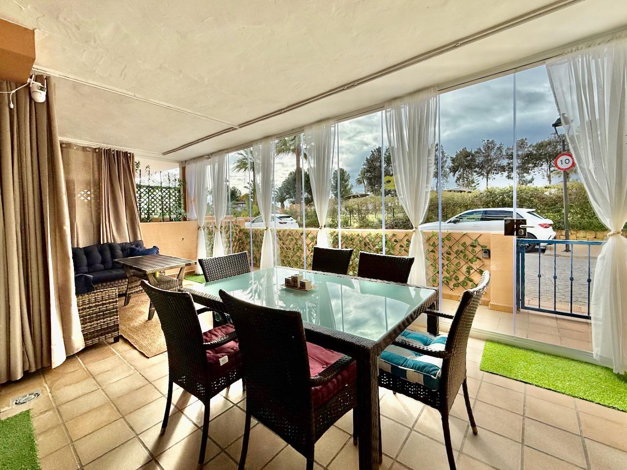 Den här fastigheten, orientering sydöst, har följande anläggningar: privat terrass, utrustat kök, nära till affärer, parkettgolv, nära stan, nära hamnen, Övervakningskameror, inom golf område, tvättstuga, groundfloorpatio, täckt terrass, inhägnat bostadsområde, trädgårdsutsikt, nära faciliteter, gatuvy, luftkonditionering, fullt möblerat, nära havet/stranden, nära golf, nära restauranger, glasdörrar, Öppet kök, utmärkt skick, garage ingår i priset, nyrenoverad och säkerhetsövervakning 24h.