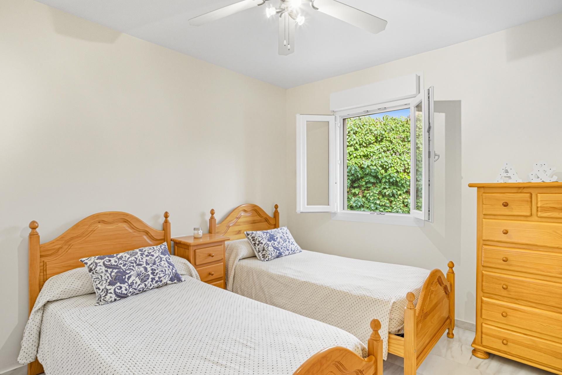Denna vackra tre sovrum, söderläge radhus ligger i den eftertraktade gated community av El Capricho på Marbella Golden Mile, som erbjuder rymliga tropiska trädgårdar och två gemensamma pooler. Idealiskt beläget inom gångavstånd till stranden, barer och restauranger, och bara en kort bilresa från Marbella Center och Puerto Banús, kombinerar fastigheten bekvämlighet med charm. Grundvåningen har en ljus levande och matplats med en eldstad och tillgång till en generös terrass perfekt för utomhusmat, ett nyrenoverat separat kök och en gästtoalett. Trappor leder ner till en stor källare som för närvarande används som sovrum och konststudio med eget badrum. På övervåningen åtföljs mastersviten av två gästrum och ett familjebad. Ytterligare höjdpunkter inkluderar monterade garderober, marmorgolv och privat parkering för en bil.