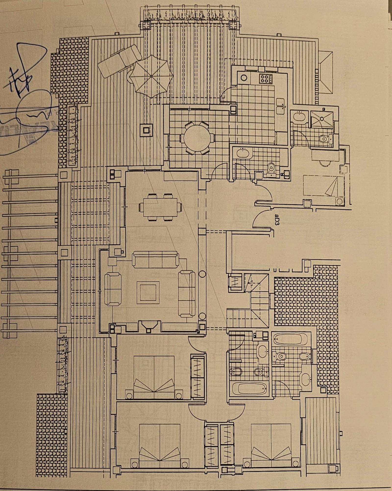 Tvåvånings takvåning till salu i Hacienda del Sol, Estepona Öst med 5 sovrum, 4 badrum, 2 badrum, inbyggd 2005 och har Pool (gemensam), garage (privat) och trädgård (gemensam). Mått: 197m² byggd och 90m² terrass.