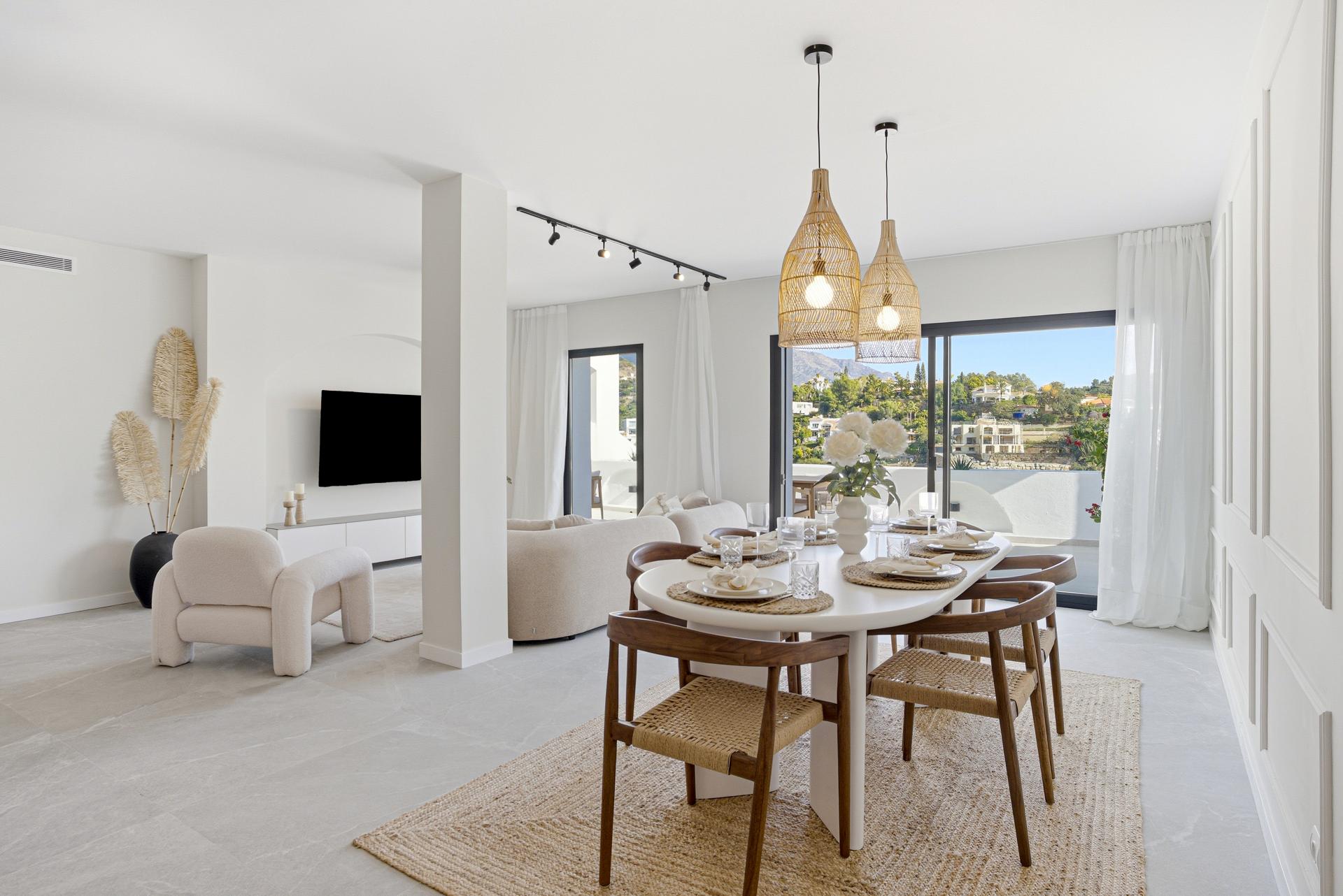 Fullt renoverad till en exceptionell standard, denna förhöjda sydöst mot bottenvåningen lägenhet i prestigefyllda La Quinta Golf erbjuder ljus, rymlig öppen planlösning och ett elegant modernt kök. Fastigheten har tre vackert utsedda en-suite sovrum, en gästtoalett, golvvärme i badrummen, dubbel glasering och ett dedikerat BBQ-område. En stor terrass visar hisnande sjön, golf, hav och bergsutsikter, vilket skapar en idyllisk miljö för utomhusliv. Beläget inom ett lugnt bostadsområde med frodiga gemensamma trädgårdar, en vacker pool och en gemensam bilhamn, är fastigheten bekvämt nära alla bekvämligheter, inom gångavstånd från den berömda Westin La Quinta Hotel, dess 5-stjärniga faciliteter och golfbanan, och bara en kort bilresa från stranden. Det representerar den perfekta blandningen av komfort, stil och utmärkt läge.