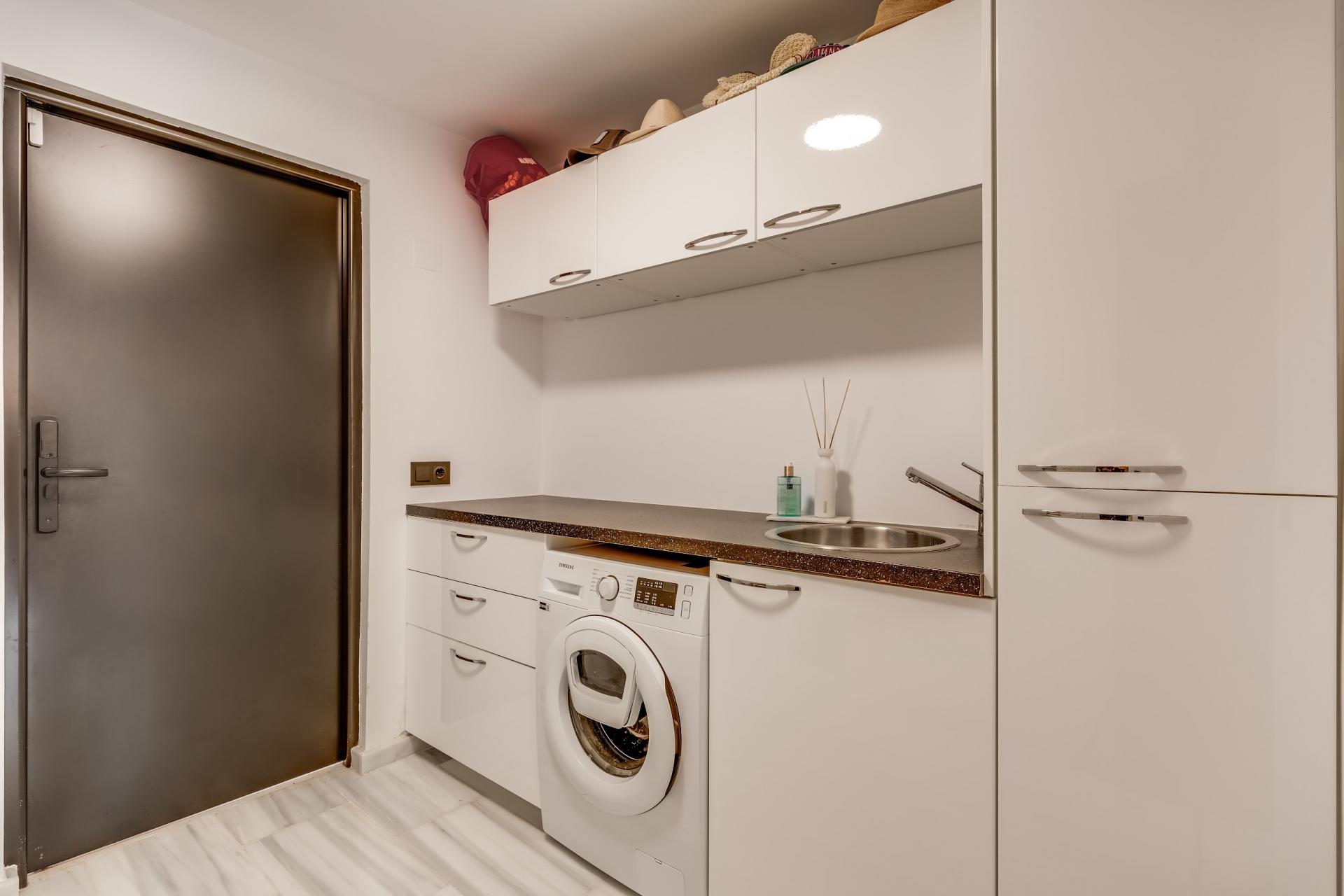 Övre våning: Mastersviten erbjuder ett eget badrum och elegant design, vilket säkerställer en fridfull och privat tillflyktsort. Ett ytterligare gästrum med eget badrum finns också på denna nivå, idealiskt för familj eller gäster. Båda sovrummen har balkonger, vilket låter dig njuta av utsikten och det medelhavsklimatet. Det finns också en rymlig terrass på denna nivå.