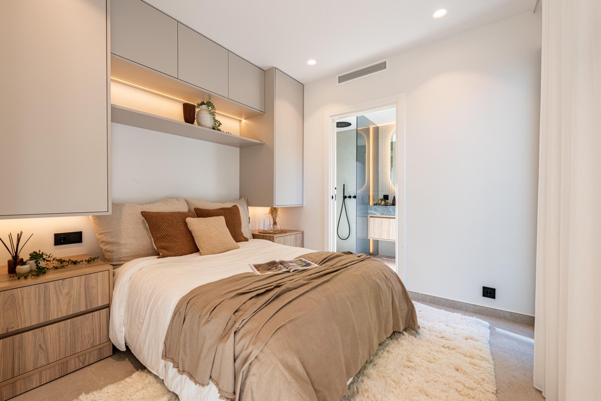 Villan erbjuder fyra sovrum, alla med en-suite badrum, vilket ger varje familjemedlem sin egen komfortzon. Varje sovrum är utrustad med individuellt centralt AC (hett/kall) för personlig klimatkontroll. Mastersviten innehåller ett sminkområde, ett rymligt badrum med både dusch och badkar och en privat utsikt över La Concha - en subtil påminnelse varje morgon där du bor.