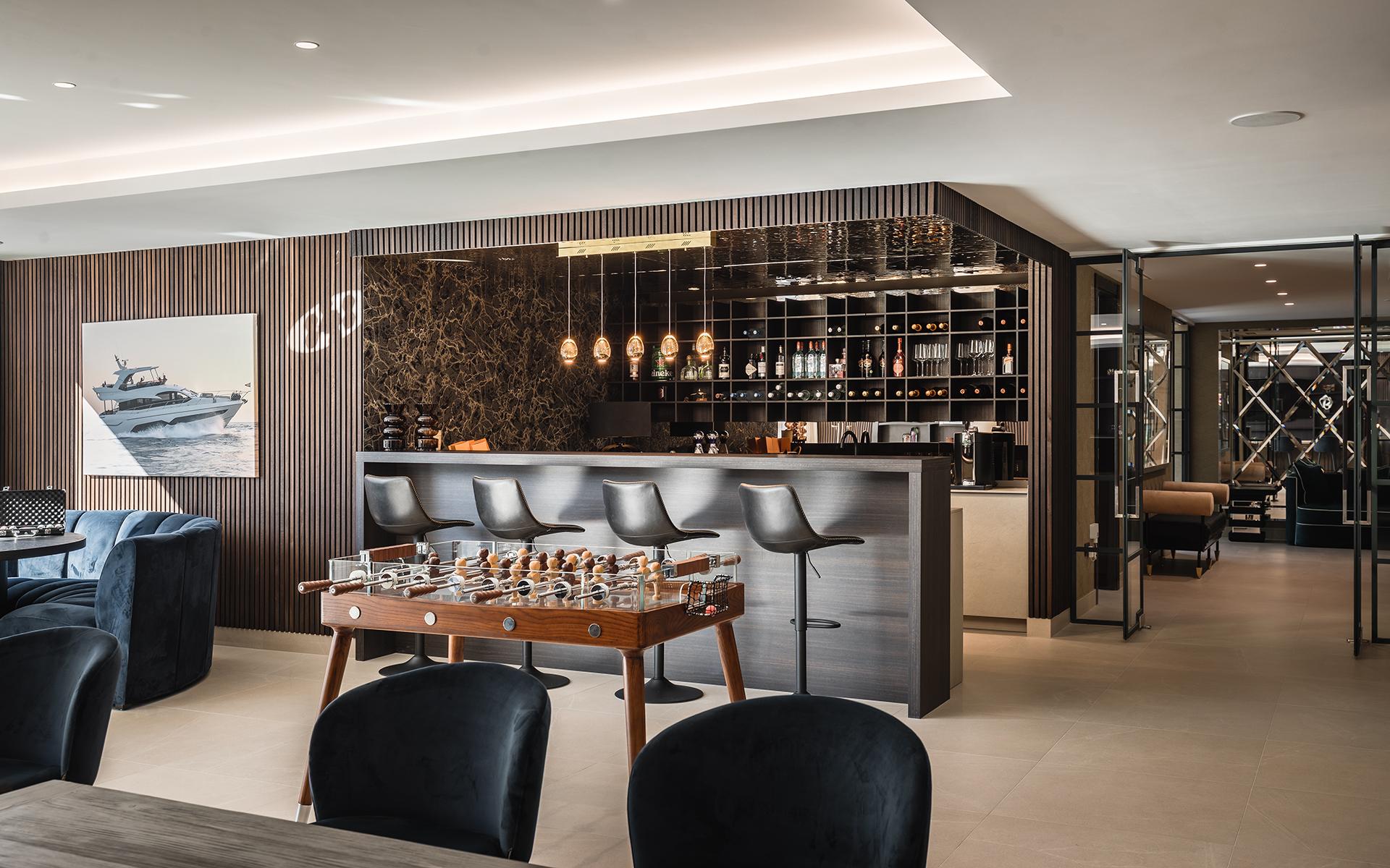 Ytterligare funktioner förbättrar hemmets överklagande, inklusive ett dedikerat wellnessområde med en bastu och ångrum, ett spelrum och en privat hiss som lägger till både bekvämlighet och tillgänglighet. Taket solarium erbjuder en fantastisk miljö för avkoppling, komplett med ett BBQ-område, dusch och en utomhus lounge med panoramautsikt - idealisk för solnedslagna eftermiddagar eller kvällssamlingar.