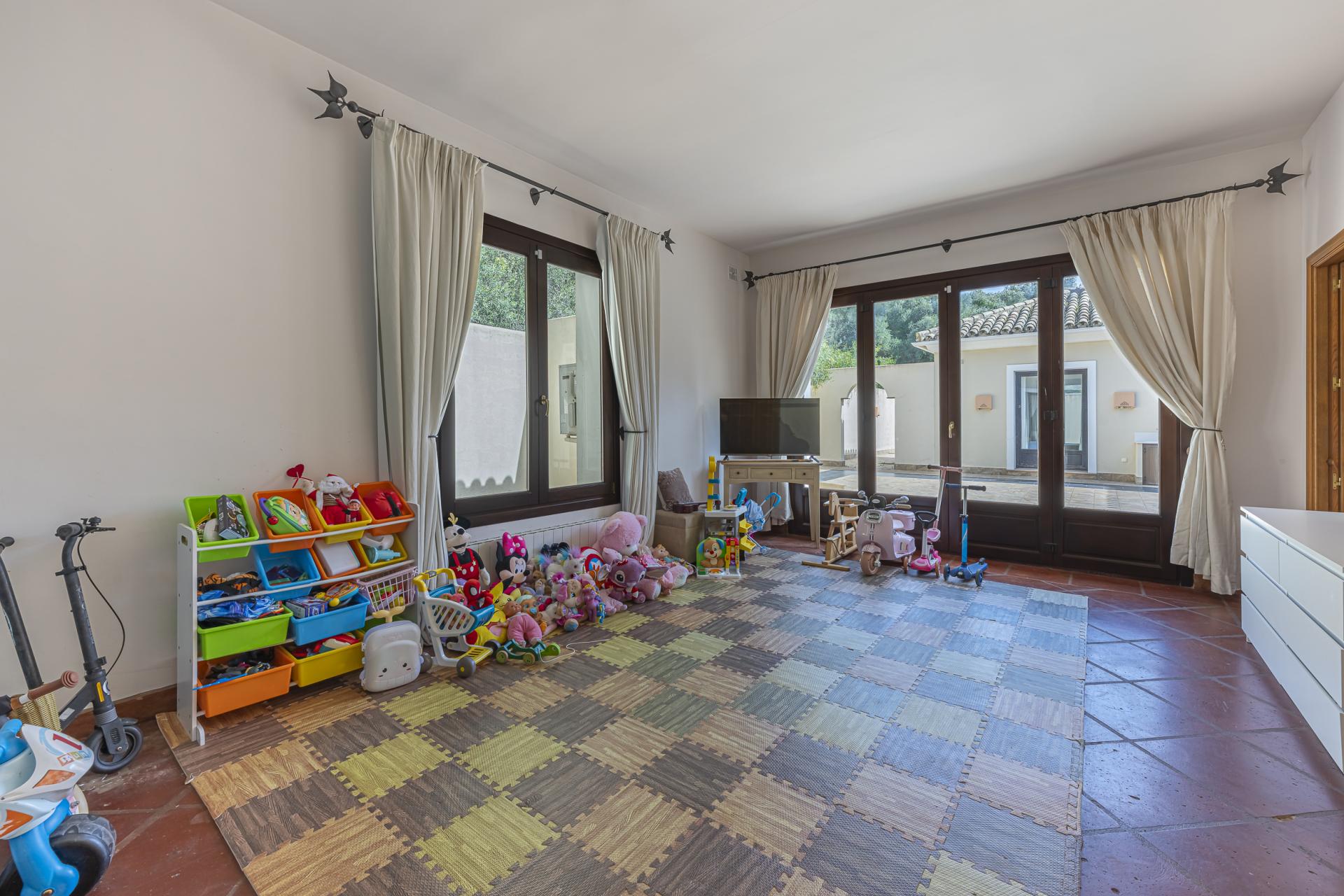 Villa till salu i Zona F, Sotogrande Alto med 5 sovrum, 5 badrum, 6 badrum, inbyggd 2001 och har Pool (privat), garage (privat) och trädgård (privat). Mått: 600m² byggd och 2500m² Tomt.
