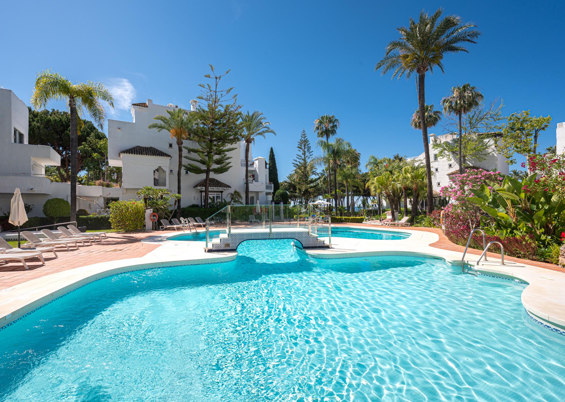 Light-flooded apartment in the sought-after urbanisation Alhambra del Mar with orientation to the west to enjoy the evening sun on wonderful, spacious terrace. Originally it had only one bedroom but a second small interior bedroom has been added. The apartment has been partially renovated and enjoys great views of Alhambra del Mar's lush gardens and fountains. With the beach promenade and Capuccino only a few steps of distance, this real gem offers a fantastic opportunity to enjoy life by the sea or as an investment with a great rental potential.