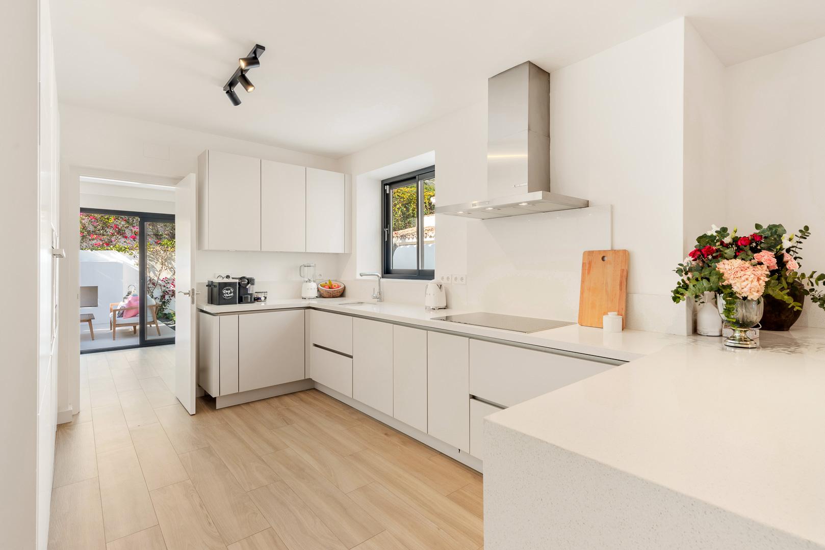 Villa Verano - A rare opportunity to acquire a 3 bedroom luxury private villa for the price of an apartment. Situated in a quiet cul de sac this beautiful one level villa has been reformed to the highest standards and has excellent sea views. Steps lead from the road entrance to an elevated pool and garden area which affords good sea views towards the coast of Africa, a further few steps and you arrive at the main covered terrace of the villa which has very good sea views and where you find the main entrance to the villa. A small hallway leads in to a spacious living room with fireplace and views over the garden and pool to the sea. Behind the living room is situated a fully fitted kitchen leading to a large additional TV living room which overlooks the delightful rear terrace with barbecue facilities and outdoor fireplace. If a fourth bedroom was required this room could easily serve as one.