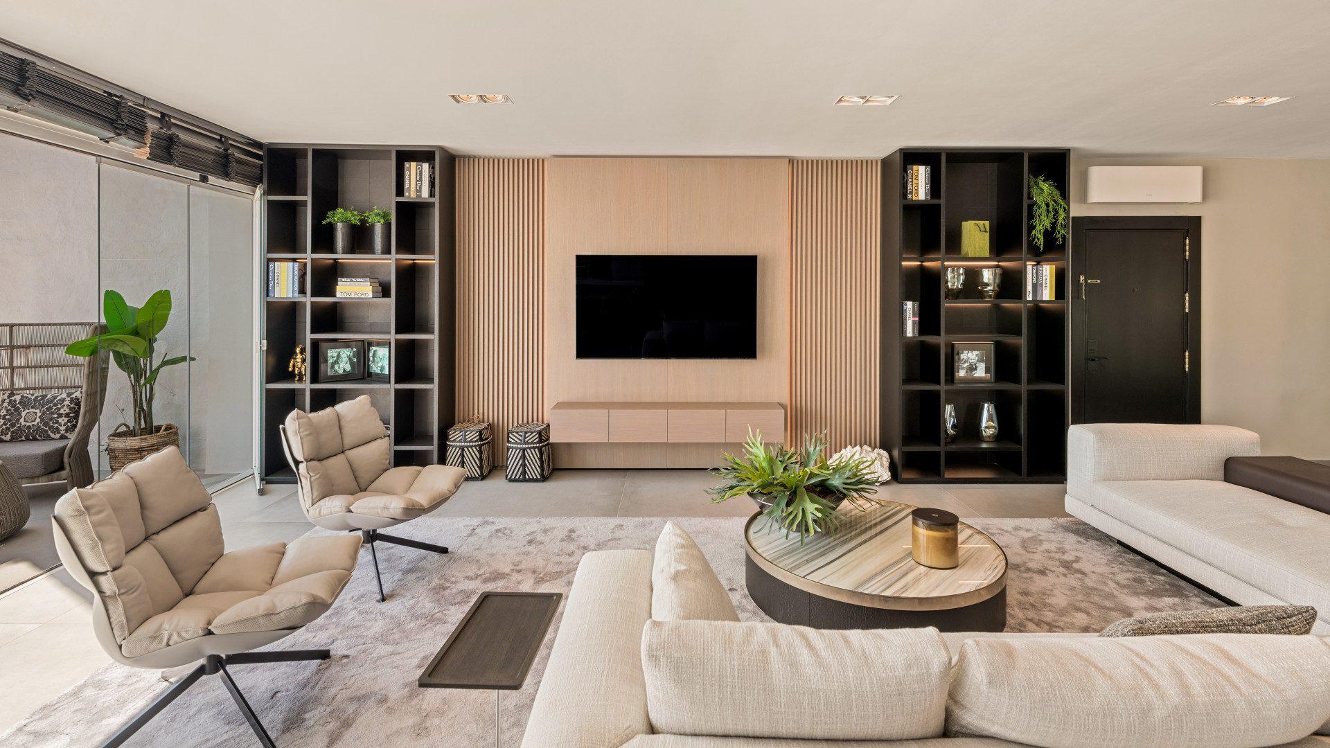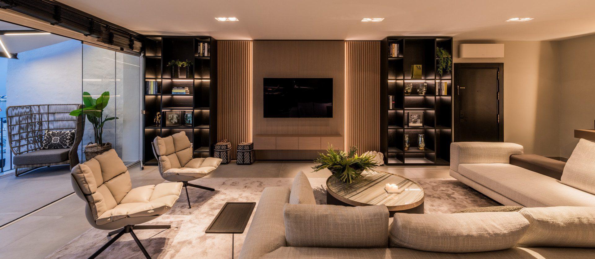 Spanning 138 m², the apartment includes two spacious en-suite bedrooms and a thoughtfully renovated interior, styled with designer furnishings by Minotti. The sleek open-plan kitchen and refined finishes create an elegant, turnkey home that invites both relaxation and entertainment. A 10 m² covered terrace seamlessly merges indoor and outdoor living, perfect for enjoying the vibrant surroundings of Marbella’s most exclusive enclave.