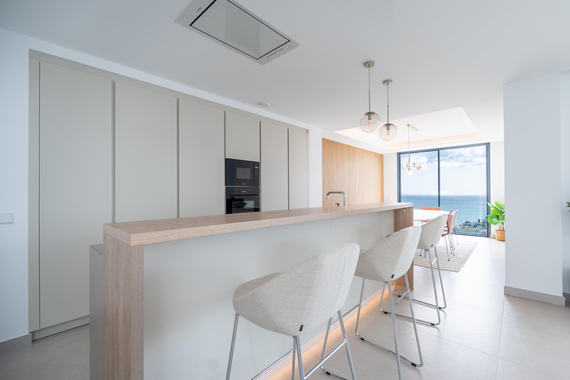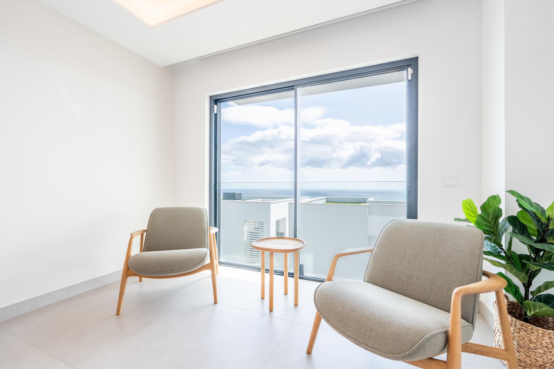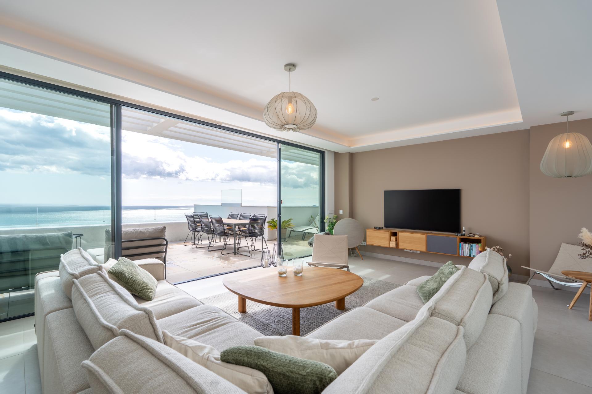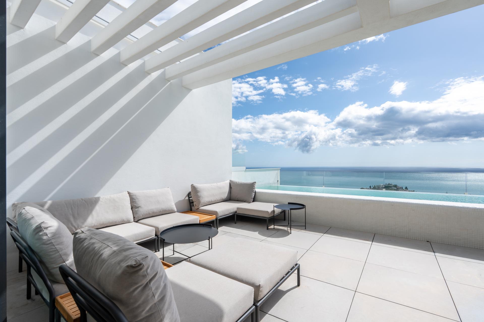 Spacious terraces, including a private rooftop terrace with pool, provide ample space for outdoor dining, entertaining, or relaxing while enjoying the sea views.
