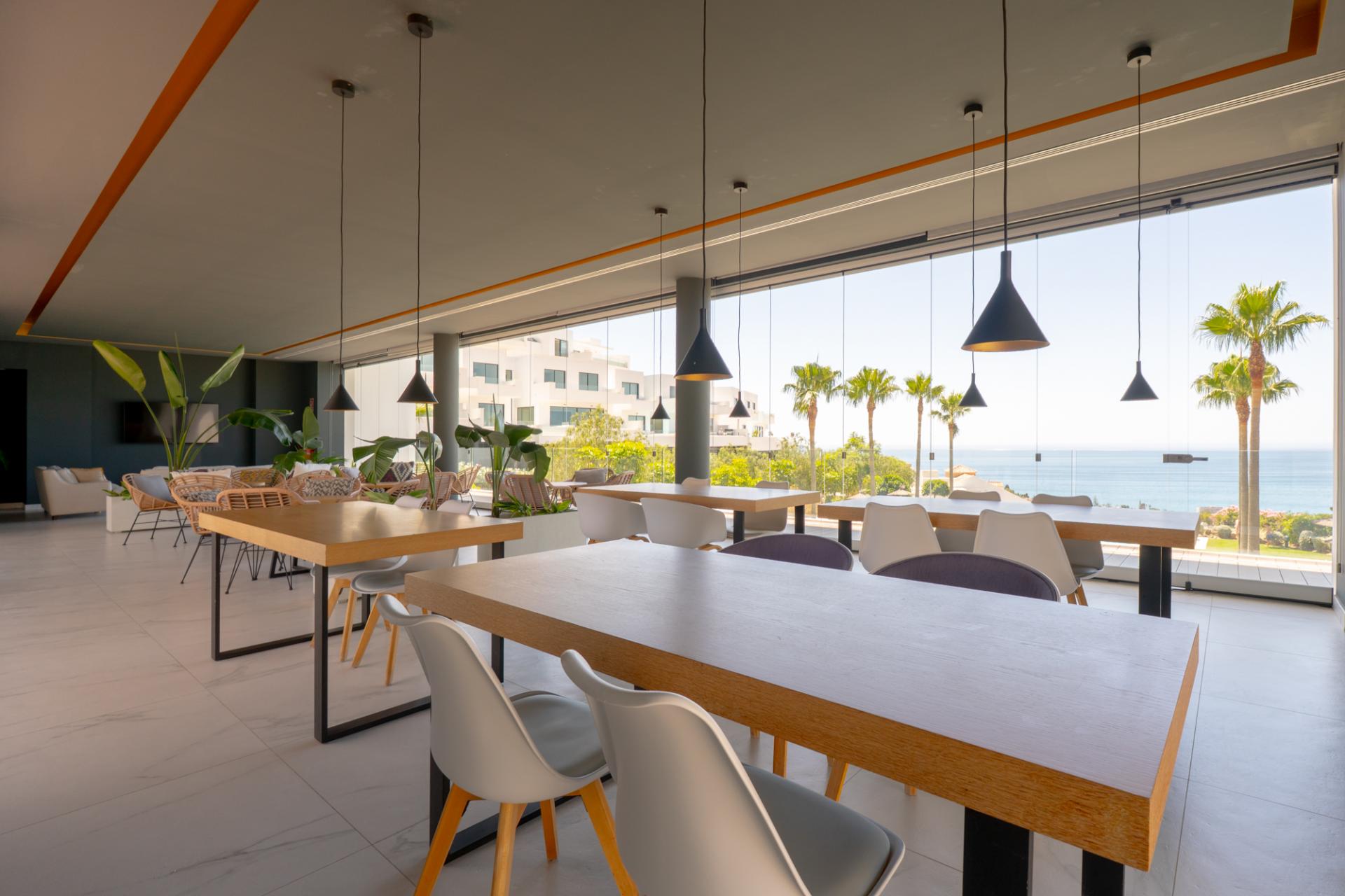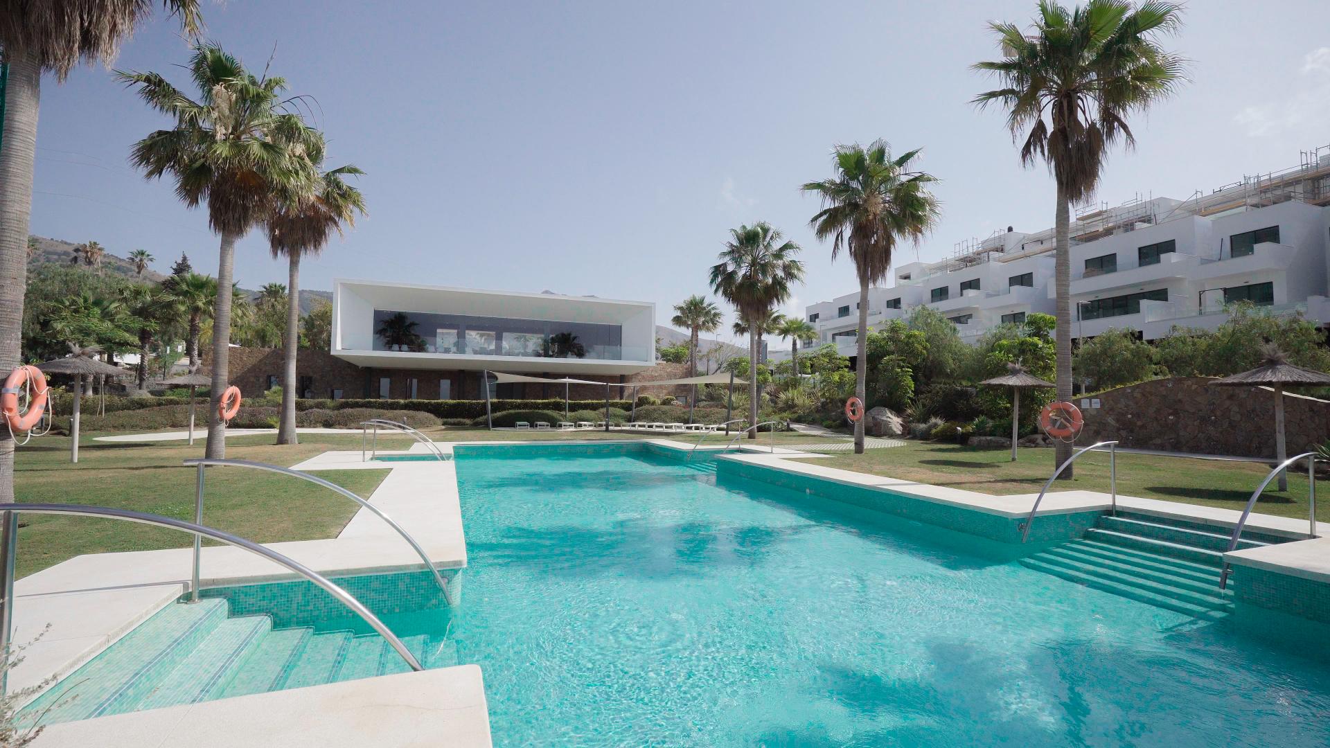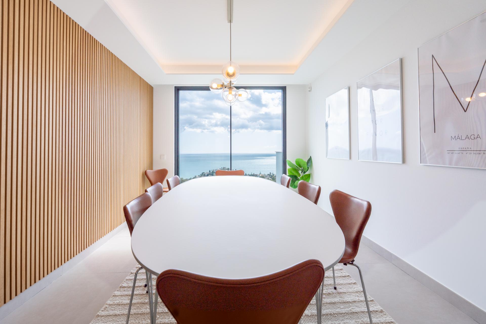 This duplex penthouse in the prestigious Marae development, Benalmádena, offers exceptional contemporary living with south-facing panoramic views over the Mediterranean sea, the Parque Rústico and the Ermita de Romería Virgen de la Cruz