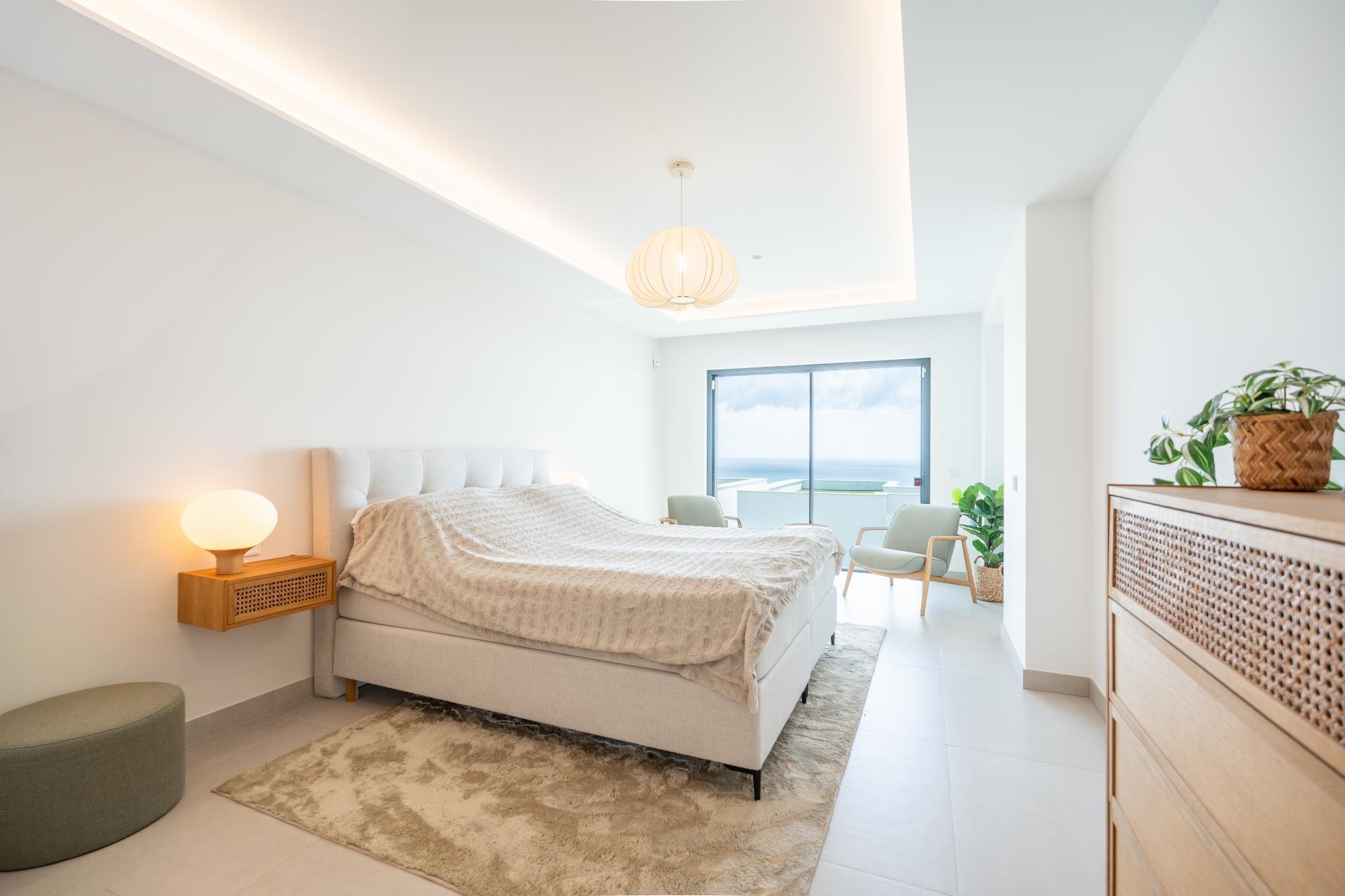 Set across two levels, the property features four bedrooms, four bathrooms, and a guest toilet designed for comfort and modern style. The open-plan living and dining area is filled with natural light thanks to floor-to-ceiling windows, seamlessly connecting the interior with the surrounding views.