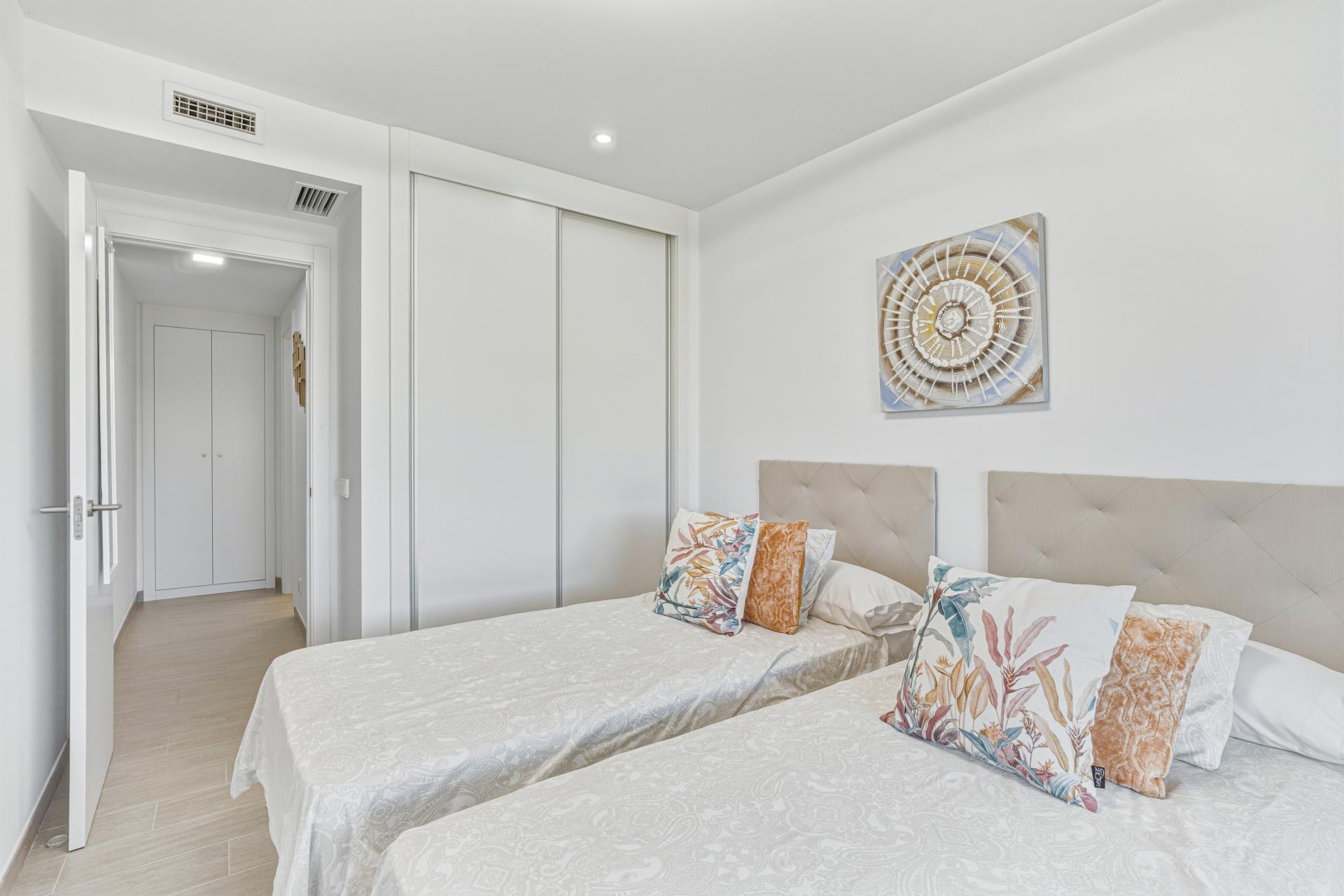 This bright and spacious two-bedroom ground floor apartment is ideally located within the sought-after gated community of El Lagar in La Cala de Mijas. Both bedrooms enjoy direct access to a generous terrace and private garden, offering plenty of natural light and a pleasant sense of space throughout. The master bedroom features its own private ensuite, and there is also a separate family bathroom for guests or the second bedroom. Inside, the property features a fully fitted kitchen with a breakfast bar overlooking the open-plan living and dining area, along with a convenient utility room located just off the kitchen. The private garden provides direct access to the beautifully maintained communal areas, which include a large swimming pool and a dedicated children’s play area. Additional features include air conditioning, fitted wardrobes, and a private parking space, all while being just a short drive to the beach and the centre of La Cala, where you’ll find a wide range of shops, restaurants, bars, schools, and nearby golf courses.