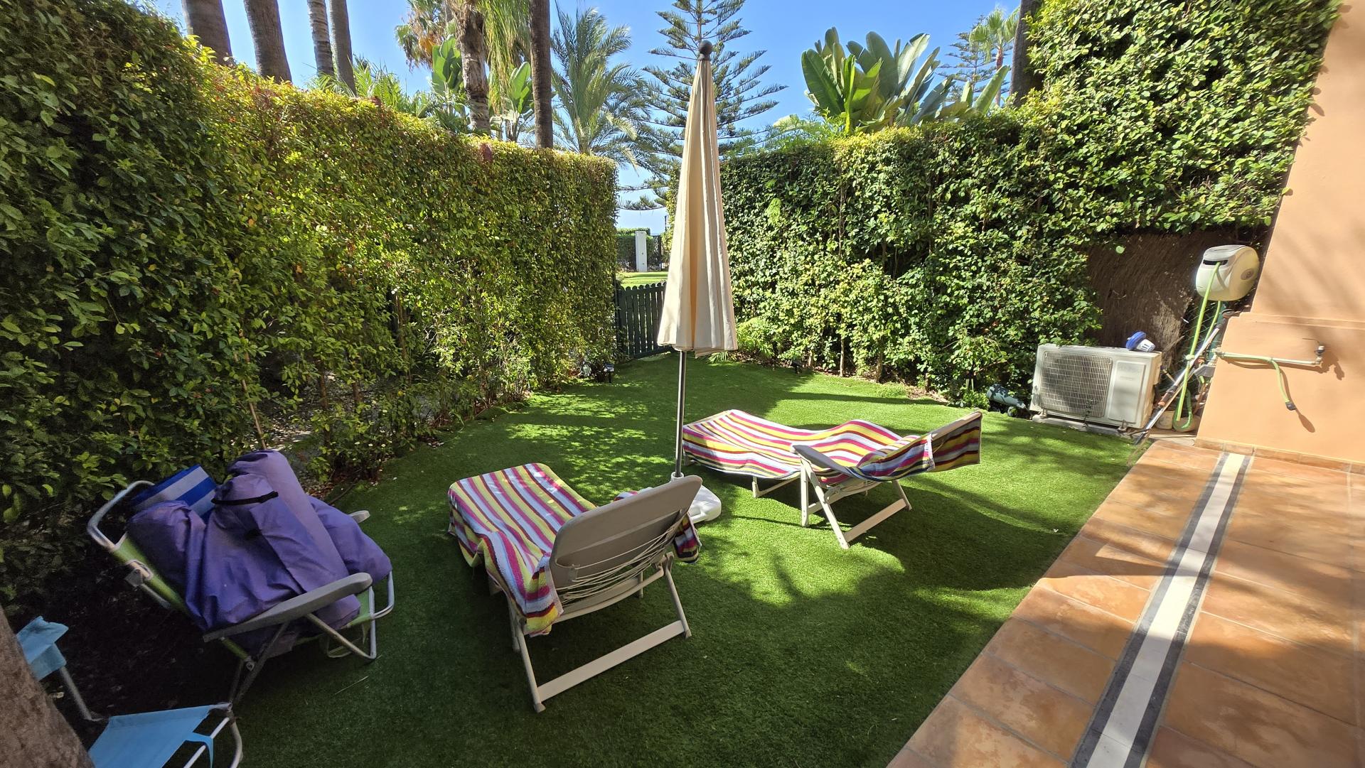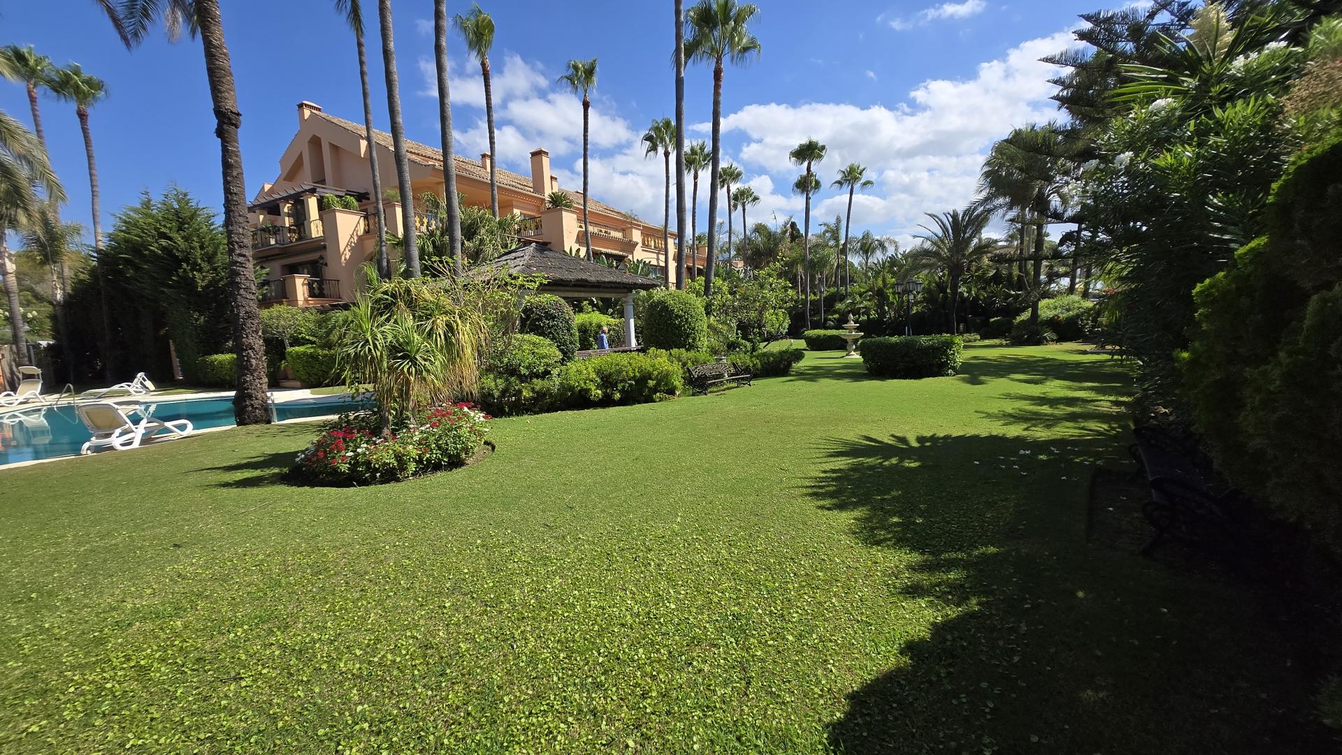 This spectacular ground floor apartment is located in the prestigious Casa Nova residential complex, with only 15 units, in Puerto Banús, Marbella. This luxury property boasts a privileged beachfront location and offers a constructed area of 358 m² as well as spacious interiors plus a private garden of 177 m2. It features two large living rooms, two large bedrooms, two fully fitted en-suite bathrooms, a guest toilet, and a staff room with a shower.