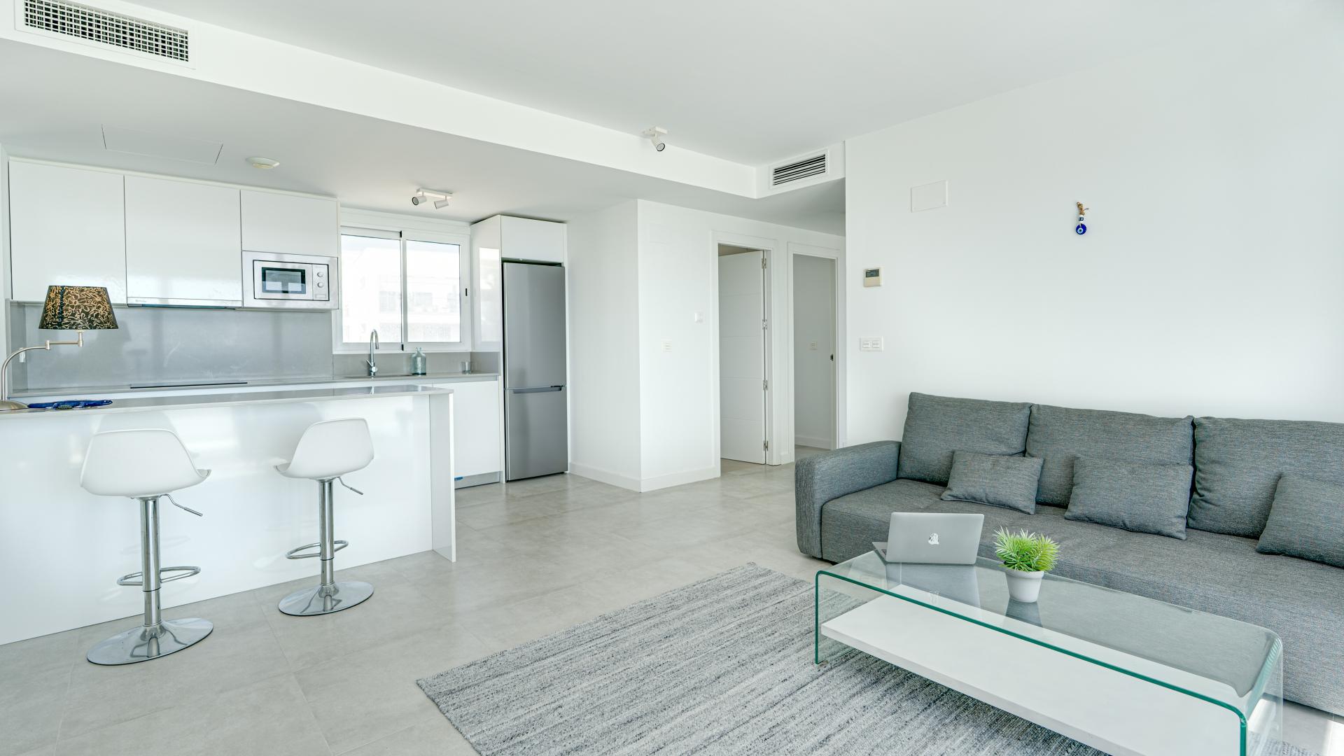This well-maintained penthouse offers a bright, open living space with an integrated kitchen and a spacious terrace boasting unobstructed panoramic sea views.