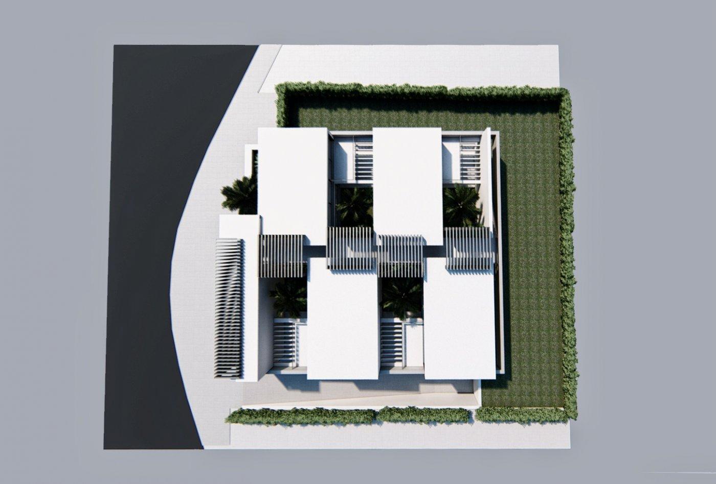 The northern section of the plot allows for the construction of 8 offices or commercial units, arranged in 4 buildings, each divided into two loft-style units with ground floor, first floor, and rooftop terrace.