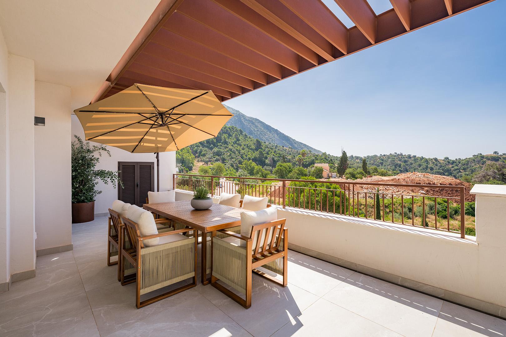 Modern Apartment with Stunning Views and Rooftop Solarium in Cerros del Lago - Set above Marbella in Cerros del Lago along the road to Istán, this contemporary three-bedroom apartment captures breath-taking vistas of La Concha, the surrounding mountains and the Mediterranean, stretching to Gibraltar and the Atlas mountains. Ten minutes from Marbella and Nueva Andalucía, it blends serenity with easy access to the coast’s most prestigious amenities. The home is newly built with energy efficiency in mind, underfloor heating and a carefully planned layout that maximises light, comfort and liveability.