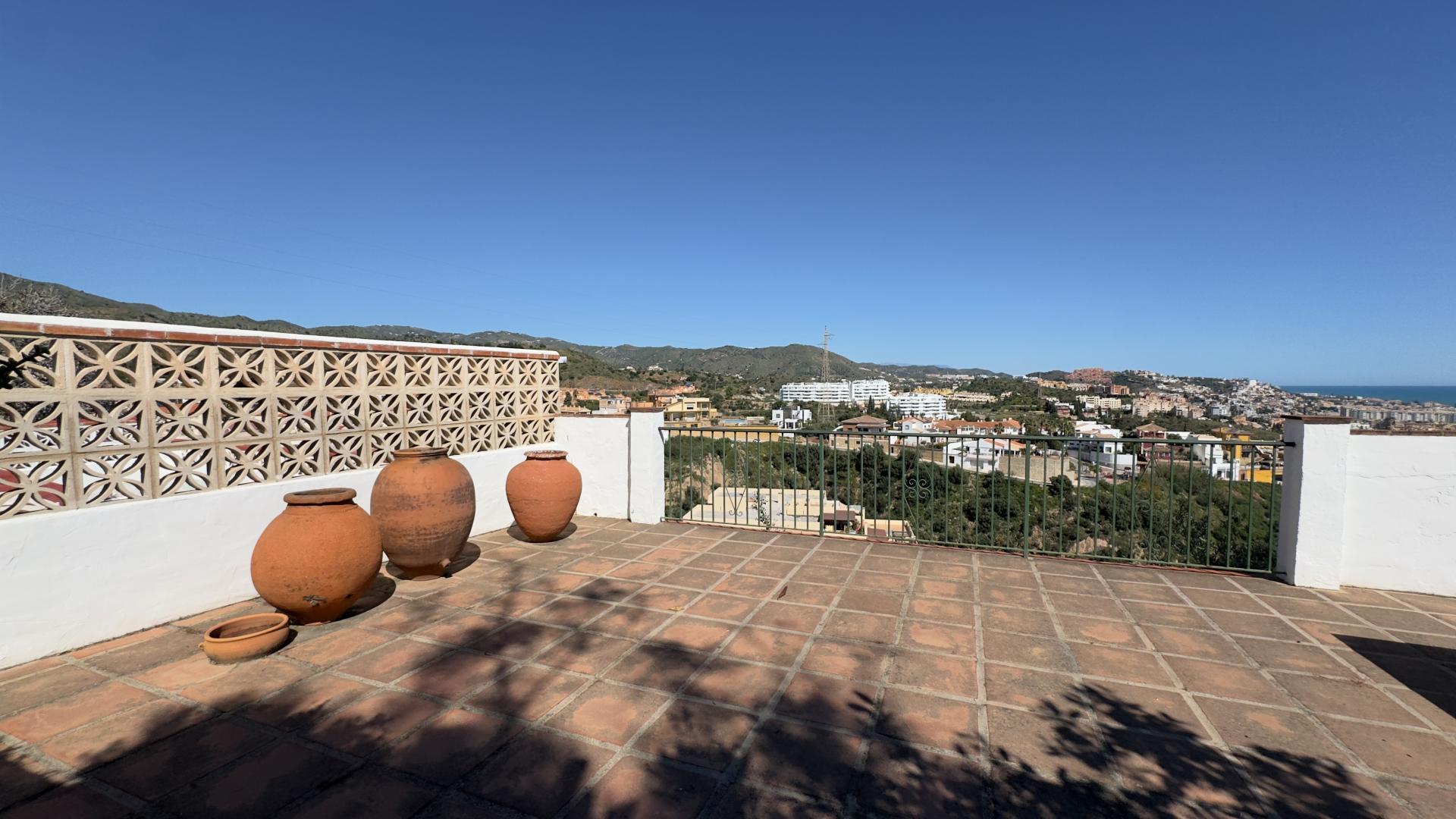 MALAGA - LA CALA DE MORAL - Charming corner house with spacious garden terrace and open sea views. An appealing option for buyers looking for a home with character and the opportunity to modernize it according to their own ideas.