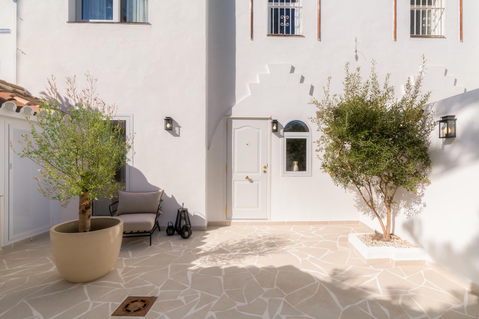 Welcome to this charming 4-bedroom townhouse! Nestled in the cozy residential development of Los Potros, this luxuriously renovated home exudes Spanish charm and boasts beautifully landscaped gardens. Renovated with the highest quality materials and craftsmanship, this property offers unparalleled luxury living. If you desire a property within walking distance to amenities, look no further! Enjoy the afternoon sun on the main terrace and private garden, both situated on the west side.