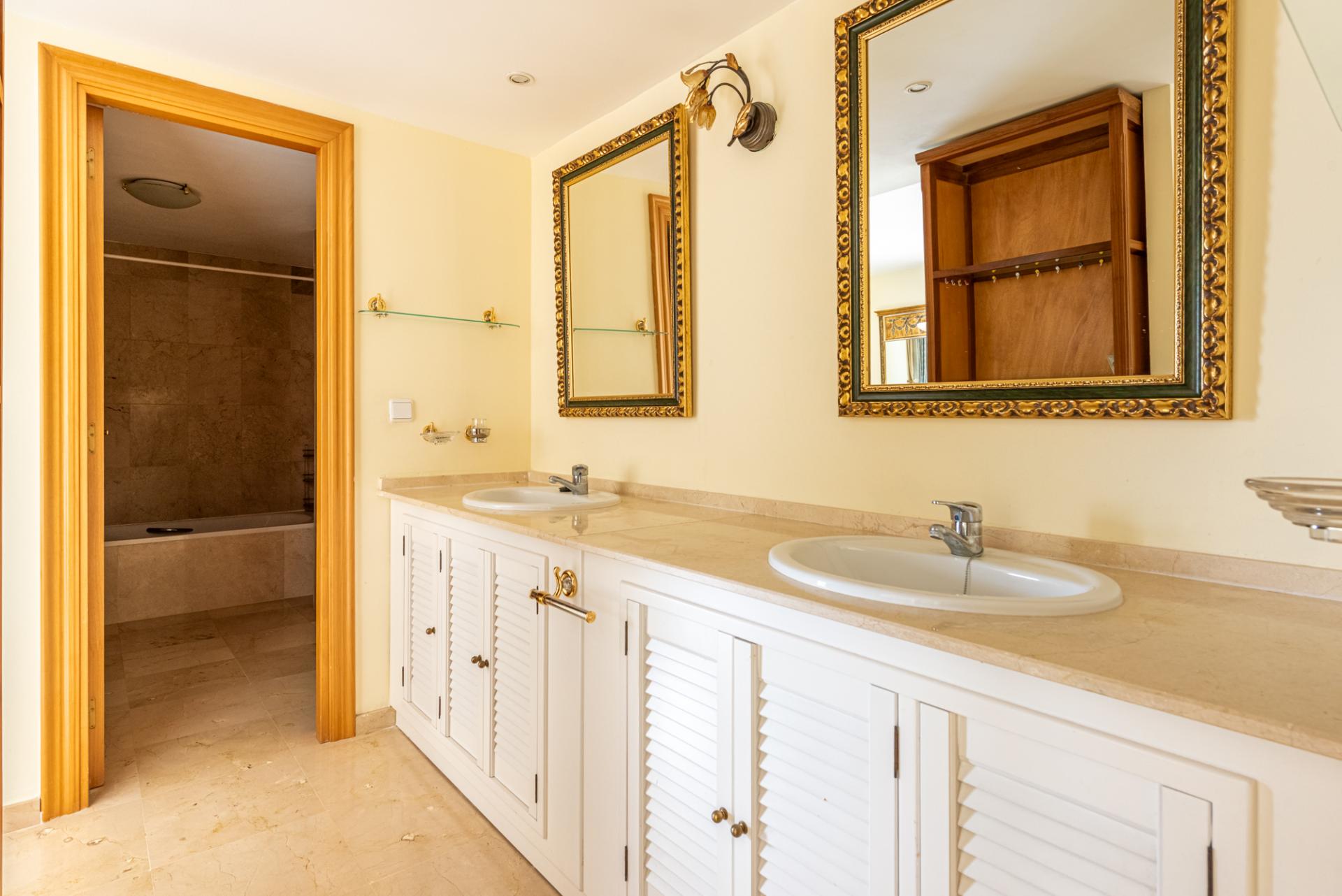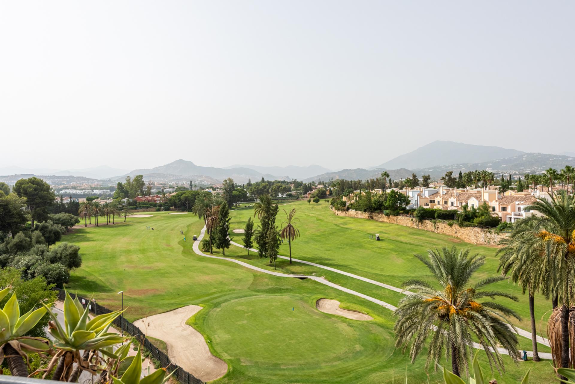 On the main floor, you’ll find a bright and spacious living room that opens onto a large terrace with stunning views of the Guadalmina Golf Course and surrounding mountains. This level also includes two guest bedrooms, one with an en-suite bathroom and both with access to a private terrace, as well as a separate guest bathroom. The kitchen on the first floor could be converted into a fifth bedroom or a spacious additional bathroom, offering further flexibility.
