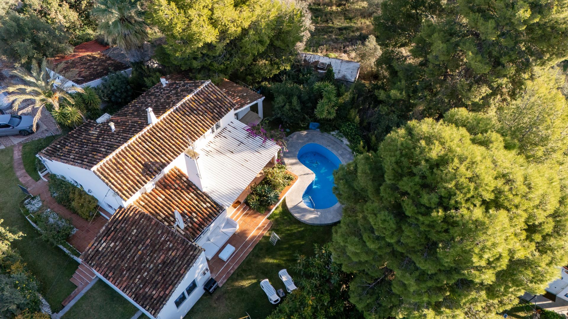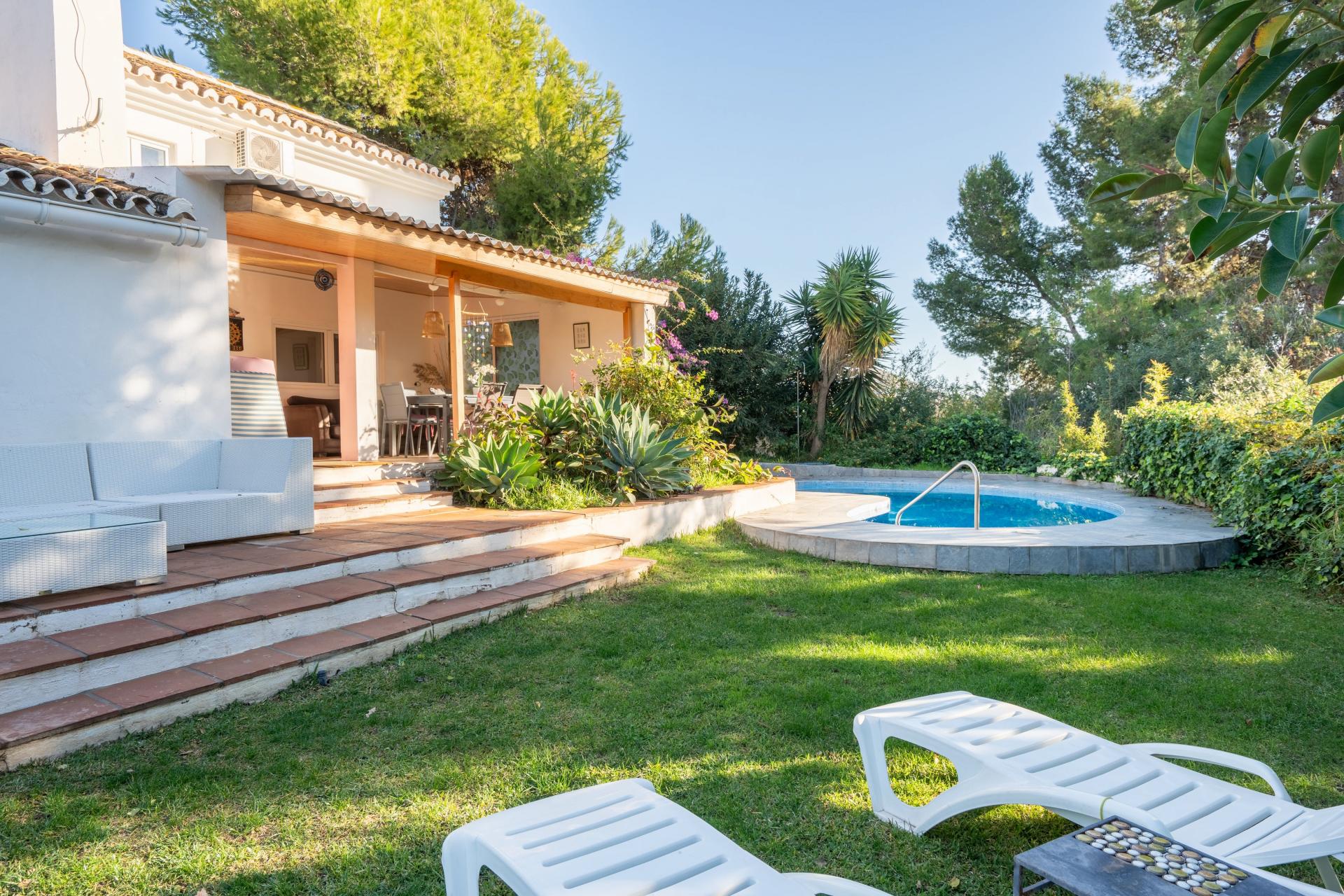 The elevated position provides partial sea views, while the location combines a peaceful natural setting with good access to nearby amenities and transport links.
