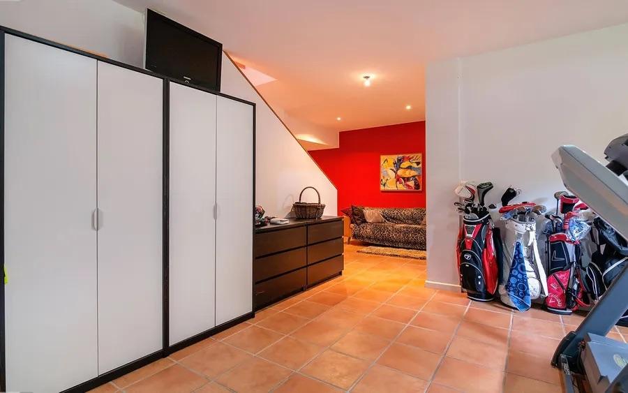 What truly sets this villa apart is its unique 120 m² cave, which houses a wine cellar, a dance floor, and a bar, creating the perfect space for hosting memorable events. A basement gym ensures that fitness enthusiasts have everything they need, while a family room with TV offers a cozy environment for relaxing in company.