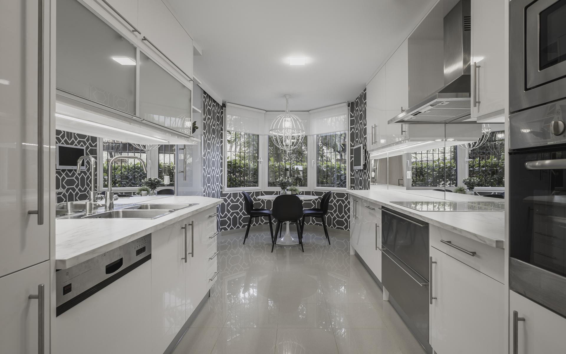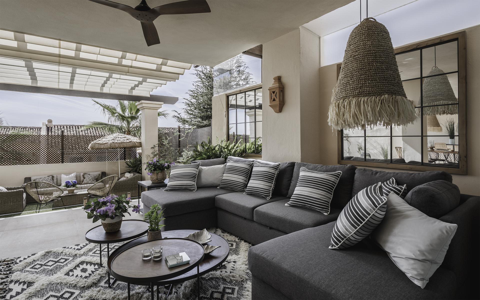 Espacioso apartamento exquisitamente renovado en planta baja en Albatros Hills, una urbanización exclusiva con seguridad 24 horas, amplios jardines, 4 piscinas (una de ellas cubierta y climatizada), pista de tenis, gimnasio y sauna. Toda en una planta, la propiedad consta de: precioso hall de entrada; salón/comedor con chimenea y acceso a una terraza parcialmente cubierta con cocina al aire libre, zonas de estar y de comedor, ducha y hamacas; cocina totalmente equipada con zona de desayuno; enorme dormitorio principal en suite (tiene dos camas dobles de tamaño king size) con acceso a la terraza; dormitorio en suite adicional; aseo de invitados. Incluye aire acondicionado frío/calor, dos plazas de aparcamiento y dos trasteros en el nivel subterráneo. Mobiliario opcional. Situado cerca de todos los servicios, a menos de 10 minutos en coche de Puerto Banús y Marbella centro y a aproximadamente 45 minutos al aeropuerto de Málaga. Una propiedad de lujo en el corazón del Valle del Golf, Nueva Andalucía.