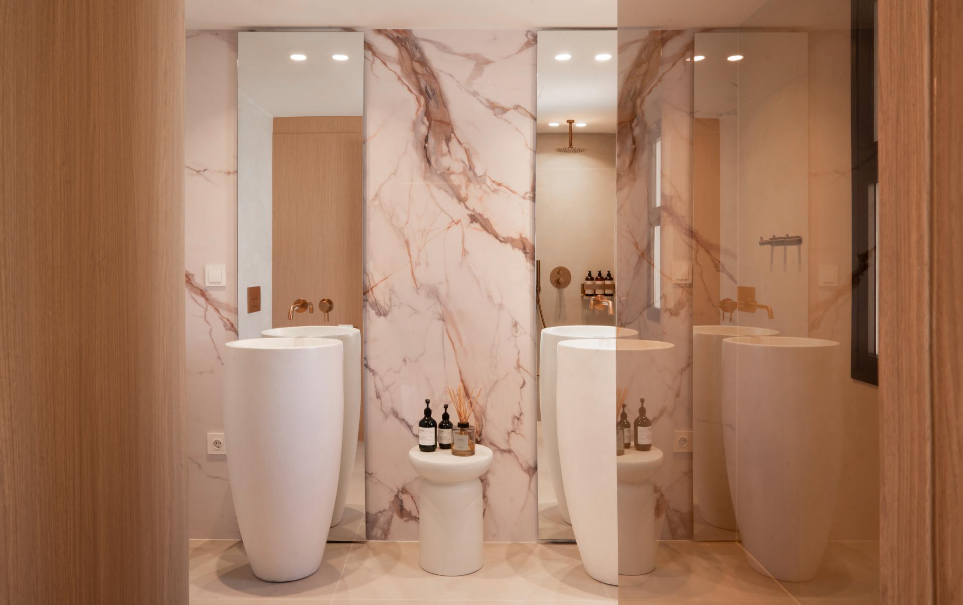 El interior incluye una cocina de concepto abierto totalmente equipada que fluye de manera natural hacia el salón y el comedor. Los suelos de piedra, las puertas de cristal y la abundante luz natural realzan la atmósfera elegante, mientras que el sistema de aire acondicionado central con tecnología Airzone permite climatizar cada estancia de forma independiente. Los baños cuentan con calefacción por suelo radiante, garantizando confort en cada detalle.