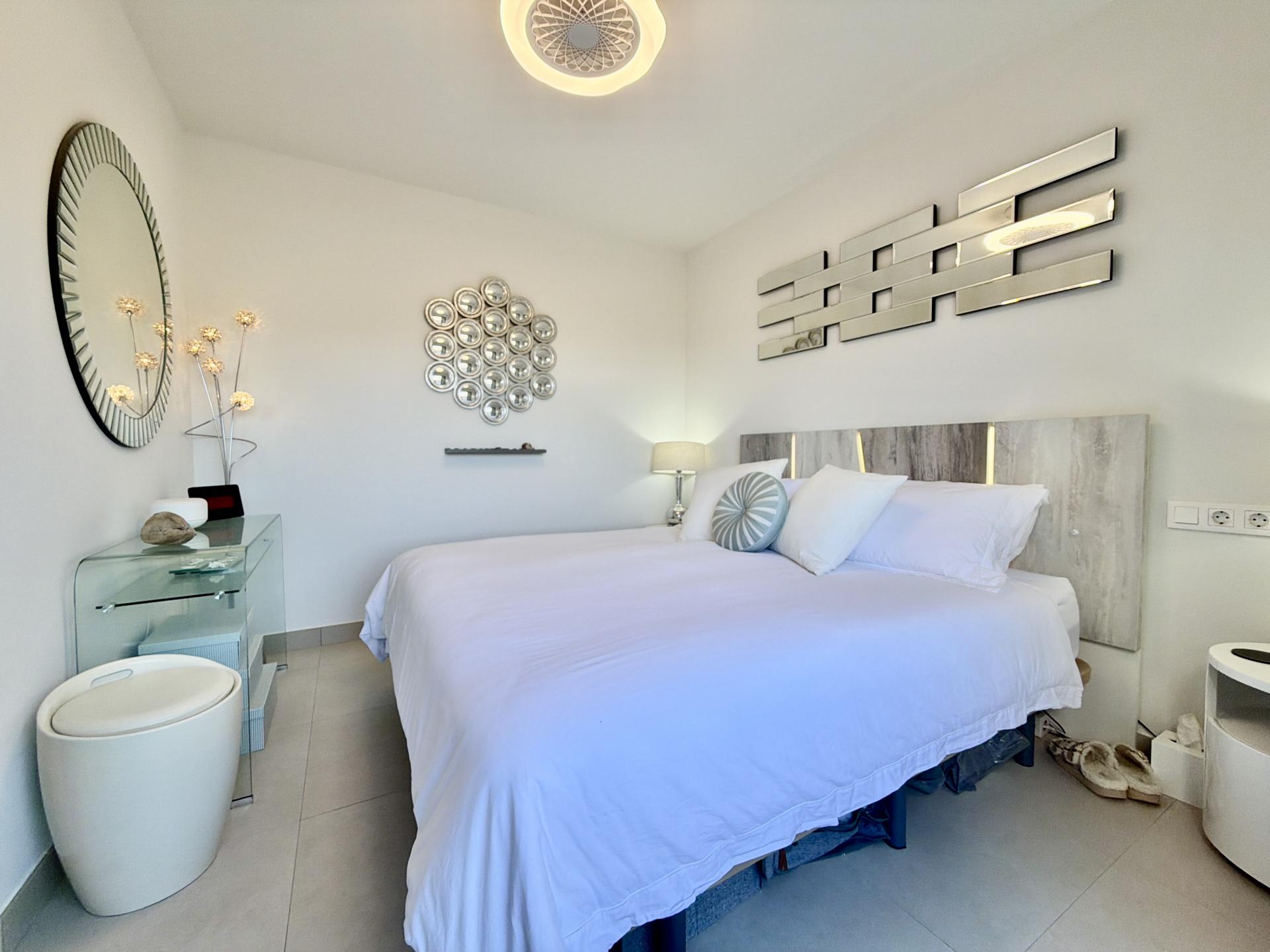 En el interior, la propiedad destaca por sus espacios luminosos, modernos y con un diseño de planta abierta. Dispone de dos dormitorios y dos baños, incluido un cómodo dormitorio principal con baño en suite. El dormitorio de invitados cuenta con su propia terraza privada orientada hacia las montañas de Mijas.