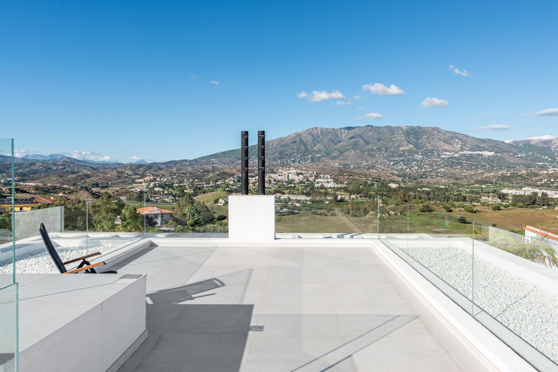 El espacioso solárium ofrece vistas de 360 grados al valle, las montañas y el mar. Es el lugar perfecto para instalar un jacuzzi, crear una zona de chill-out o simplemente disfrutar de puestas de sol en total privacidad.