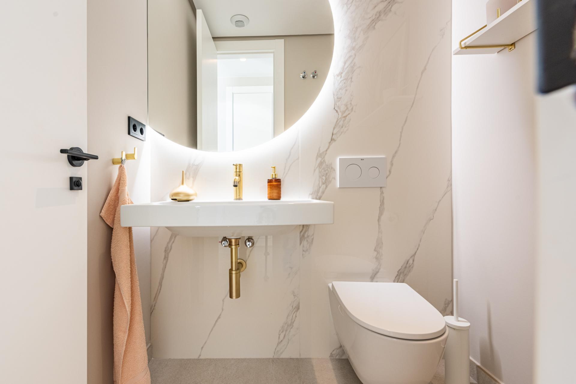 En esta misma planta hay una generosa suite de invitados con baño privado, así como un elegante aseo de cortesía.