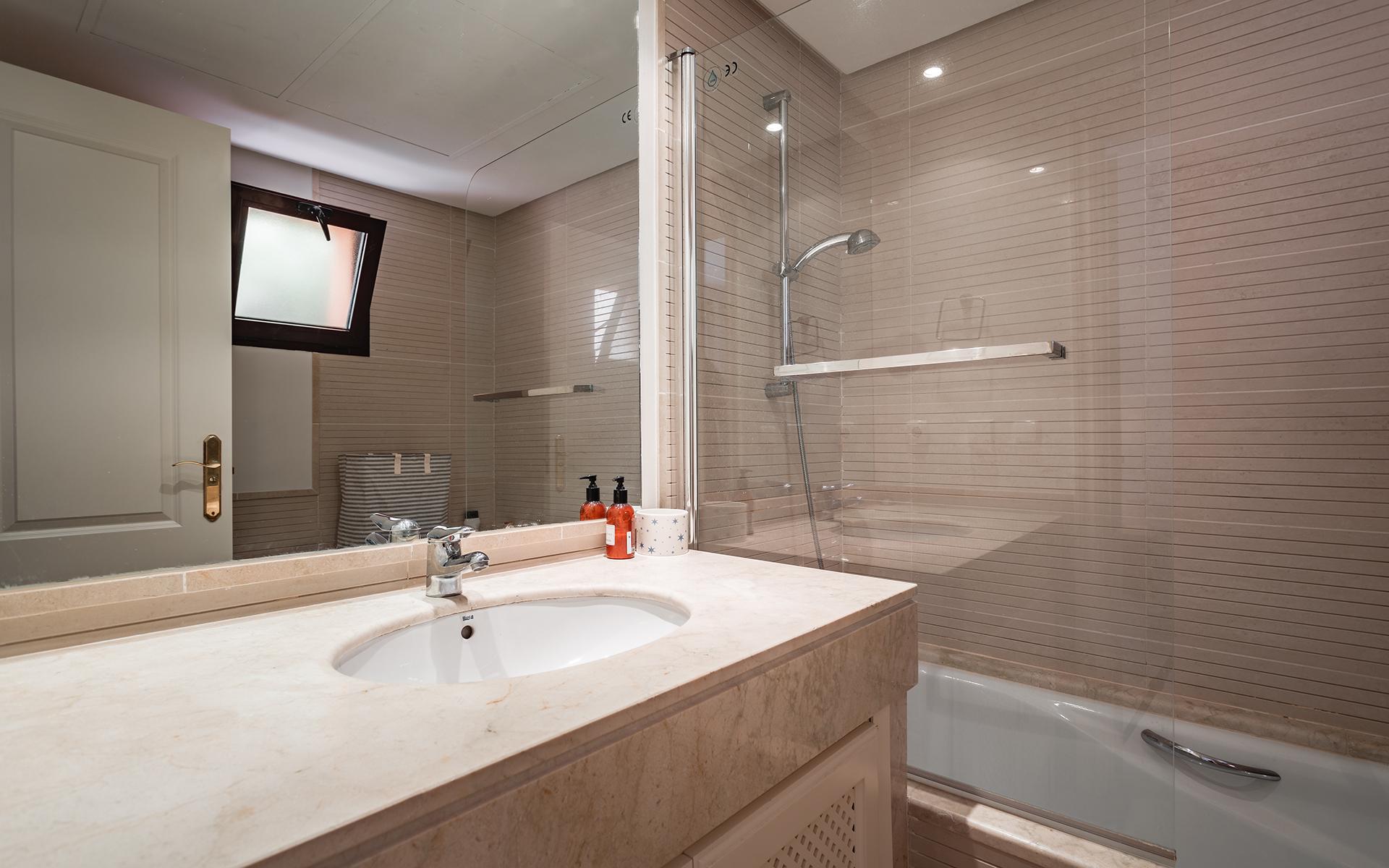 Bañado por la luz natural, el apartamento cuenta con un amplio salón-comedor con chimenea funcional, que se abre a una terraza parcialmente cubierta con vistas panorámicas al Mediterráneo, Gibraltar y África. La cocina independiente, totalmente equipada, ofrece una gran superficie de trabajo y armarios espaciosos y bien distribuidos. Dispone de dos amplios dormitorios dobles en suite con armarios empotrados, siendo el principal con acceso directo a la terraza, además de un aseo de invitados que aporta comodidad para las visitas.