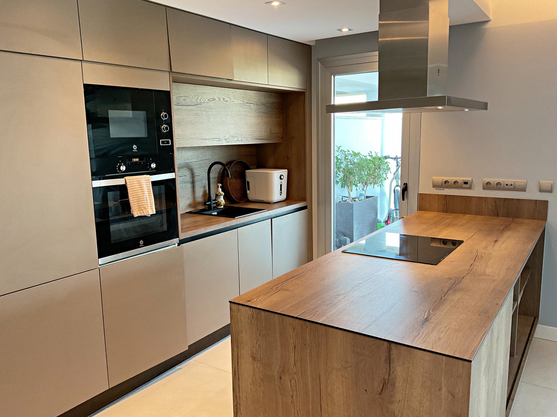* La cocina está totalmente equipada e integrada al salón con una preciosa península.