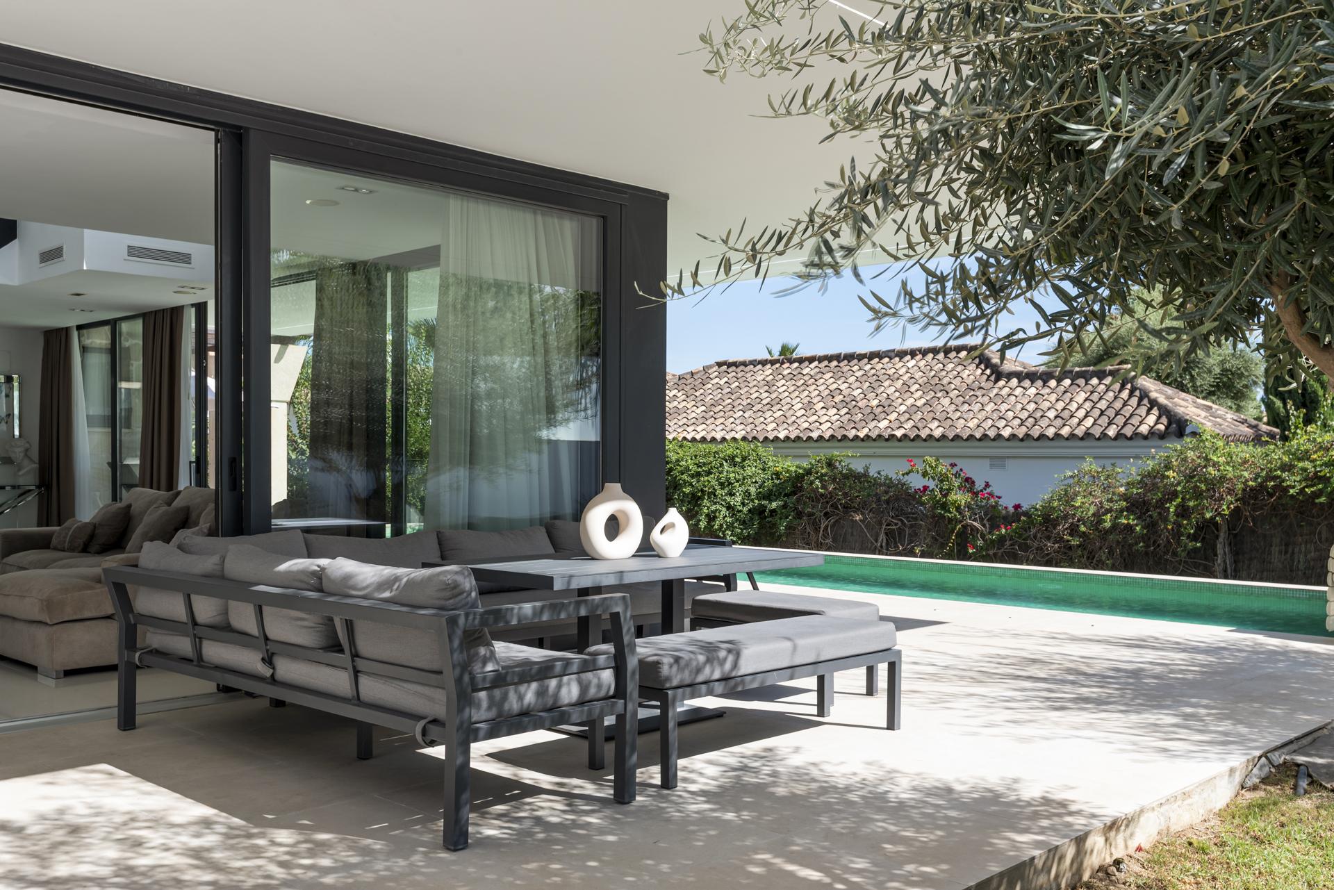 Los interiores están bañados por luz natural, conectando de manera fluida una cocina moderna totalmente equipada, elegantes espacios de estar y las comodidades más actuales, como aire acondicionado, calefacción y un sistema de seguridad discreto. Amueblada con gusto en toda su extensión, la villa se vende completamente equipada, lista para disfrutar desde el primer día.
