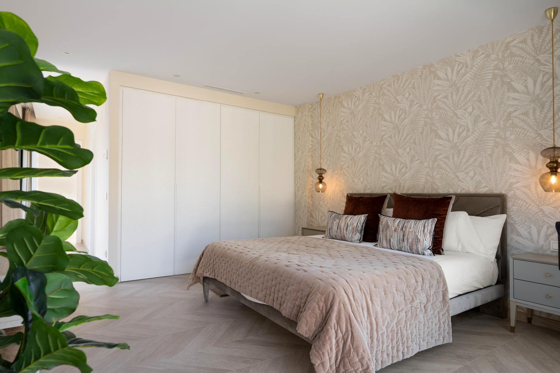 Ascendiendo la impresionante escalera de triple altura, el nivel superior alberga tres dormitorios adicionales en suite. La suite principal es particularmente lujosa, con bañera y ducha a ras de suelo y amplia terraza, perfecta para disfrutar de las impresionantes vistas de La Concha. Tres de los cuatro dormitorios gozan de impresionantes vistas hacia La Concha, mejorando aún más el atractivo de la villa.