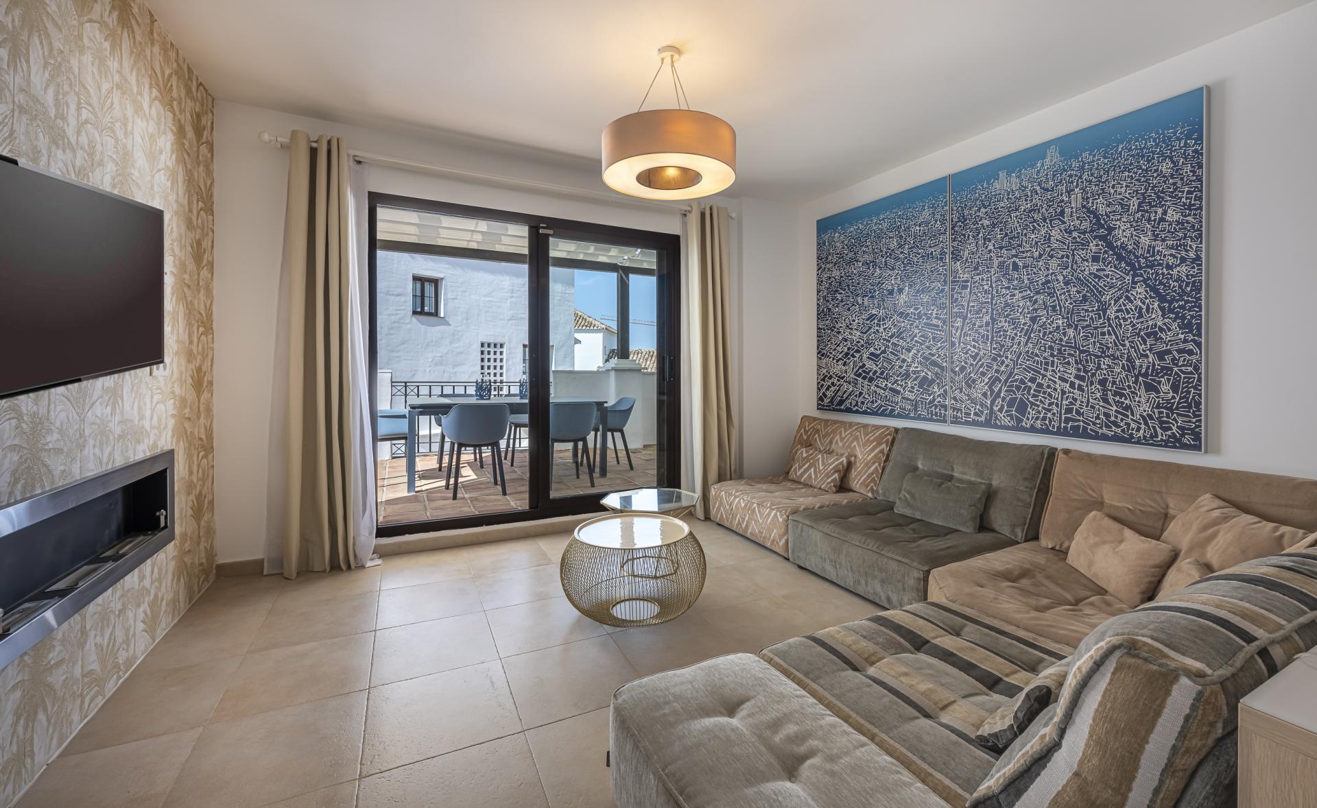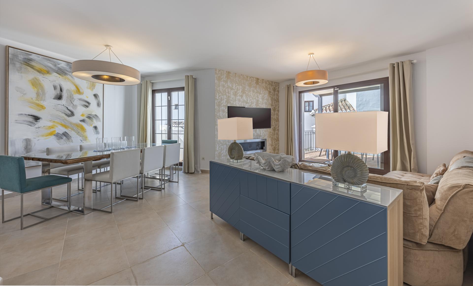 Impecable apartamento tríplex orientado al sur ubicado en una comunidad cerrada en Altos de Los Monteros, Marbella este. La propiedad se distribuye en tres niveles e incluye: