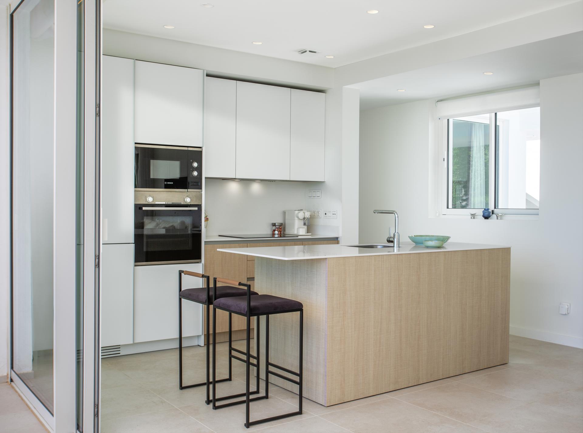 Adéntrese en una espaciosa sala de estar de planta abierta donde la moderna cocina se integra a la perfección con la luminosa sala de estar y comedor, ideal para recibir invitados o relajarse en familia. Las amplias puertas de cristal se abren a una amplia terraza con una mesa de comedor para 10 personas, una barbacoa al aire libre y una amplia sala de estar. La terraza se puede cubrir fácilmente con modernos toldos automáticos.