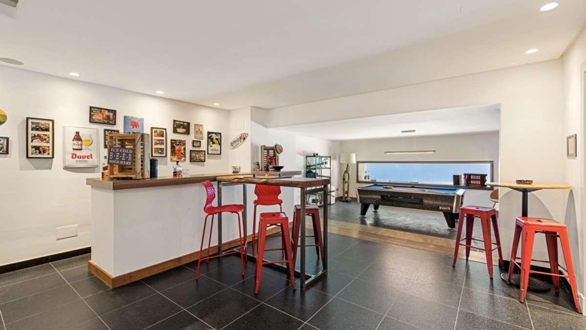 La planta inferior ha sido concebida para ocio y bienestar, incluyendo baño turco, gimnasio, sala de cine, salón de juegos con bar, zona de billar, espacio de póker y dos dormitorios adicionales en suite con terrazas privadas.