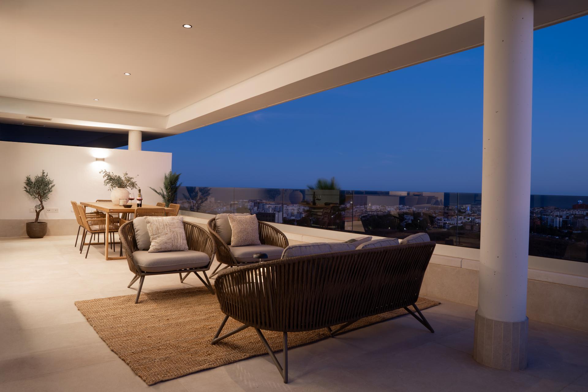 Bienvenido a este apartamento completamente nuevo, a estrenar, en Mirador de Estepona Hills, una de las urbanizaciones residenciales más exclusivas en la zona de Estepona. Diseñado con gran atención al detalle para ofrecer confort y modernidad, este amplio hogar dispone de 3 dormitorios y 2 baños más un aseo de cortesía, con una suite principal que incluye baño privado. El salón-comedor de planta abierta está inundado de luz natural y se conecta con una terraza orientada al suroeste, desde donde se disfrutan vistas panorámicas a la ciudad de Estepona y al mar Mediterráneo.