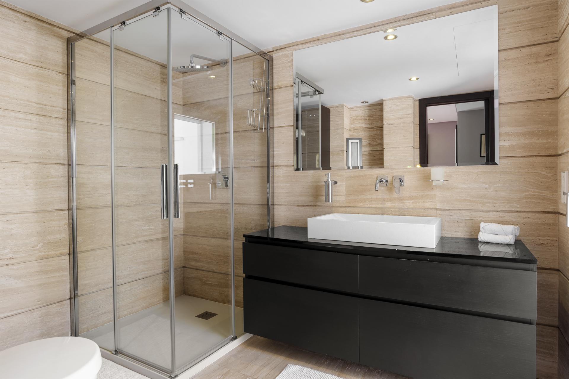 La vivienda dispone de cuatro amplios dormitorios, cada uno con su baño en suite, además de dos aseos de invitados, garantizando la máxima comodidad y privacidad. Los acabados de alta calidad, los grandes ventanales y la atención al detalle aportan una elegancia atemporal a cada rincón.