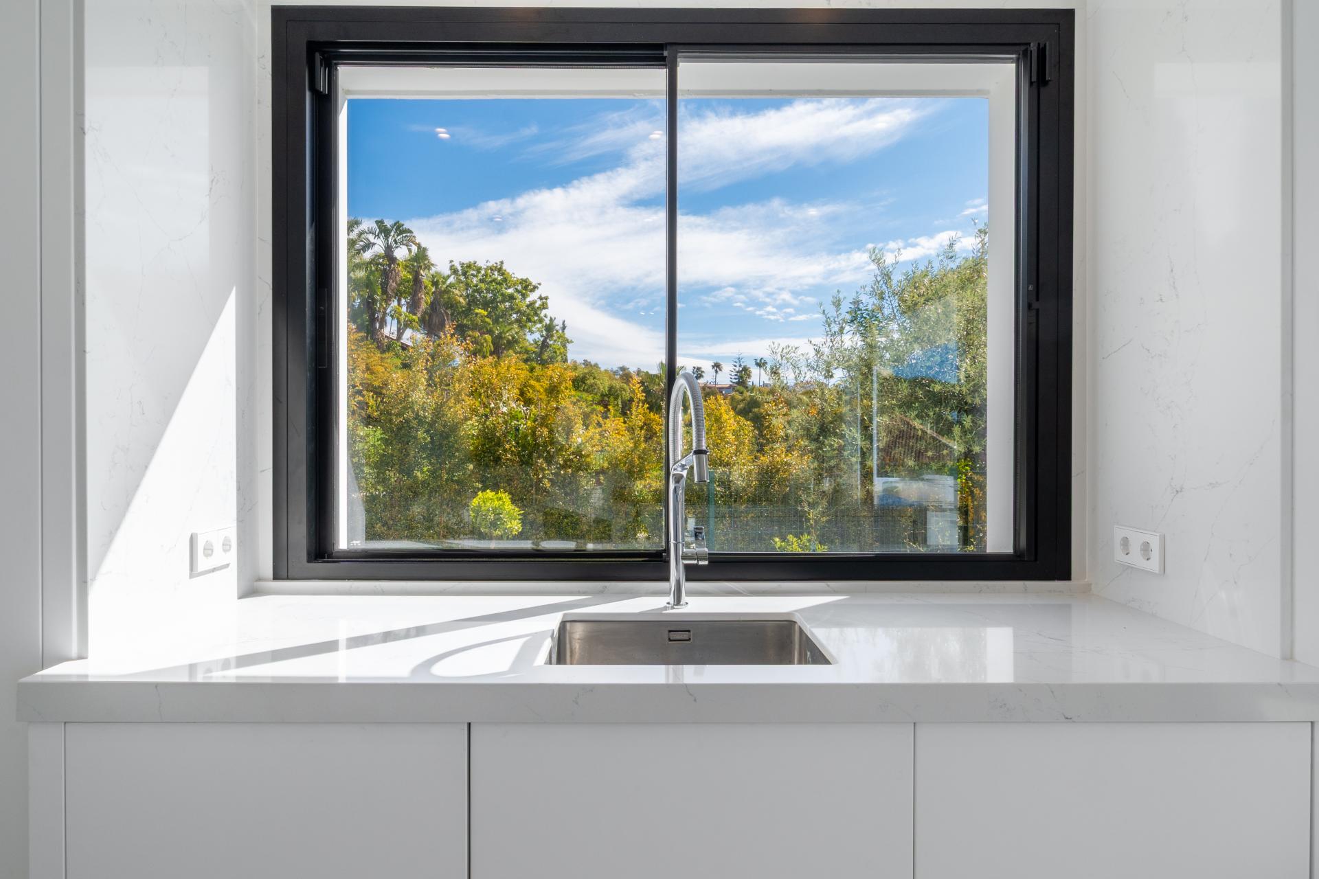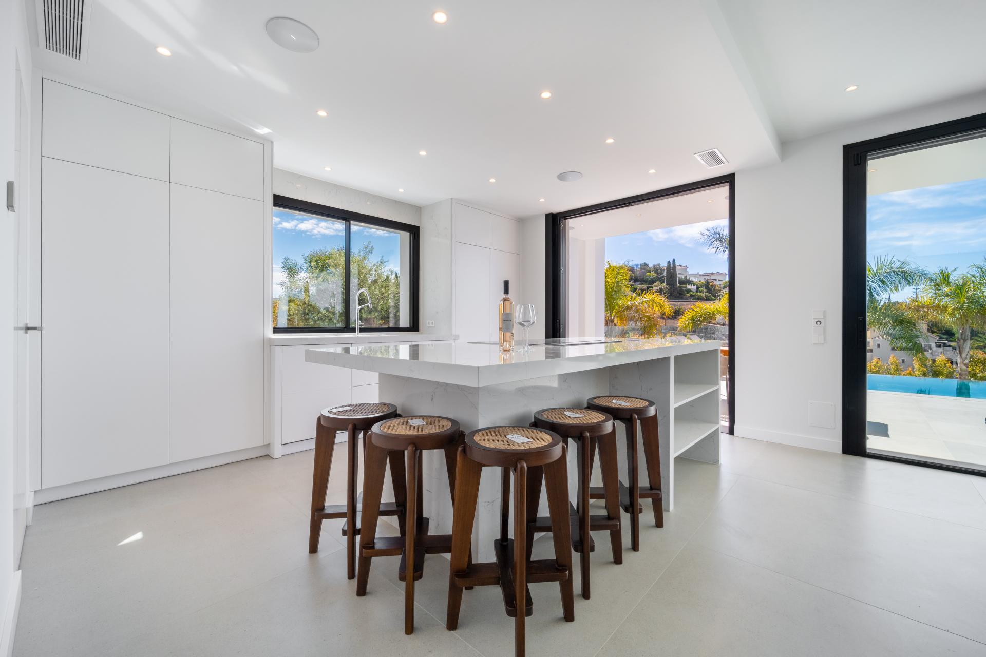 Cette propriété, orientation sud-est, dispose des installations suivantes: terrasse privée, À proximité des commerces, près de la ville, proche des écoles, vue mer, surveillancecameras, vue montagne, piscine climatisée, système domotique, buanderie, terrasse couverte, placards, aérothermie, résidence fermée, vue sur le jardin, vue sur la piscine, vue panoramique, services de proximité, chauffage par le sol (salles de bain), partiellement meublé, cuisine entièrement adaptée, pièce de service, cheminée, golf à proximité, closetorestaurants, cave, entrepôt, plancher en bois, alarme, balcon, double vitrage, cocktailbar, video interphone, neuf, excellent état, service de sécurité 24h et toilette d'invités.