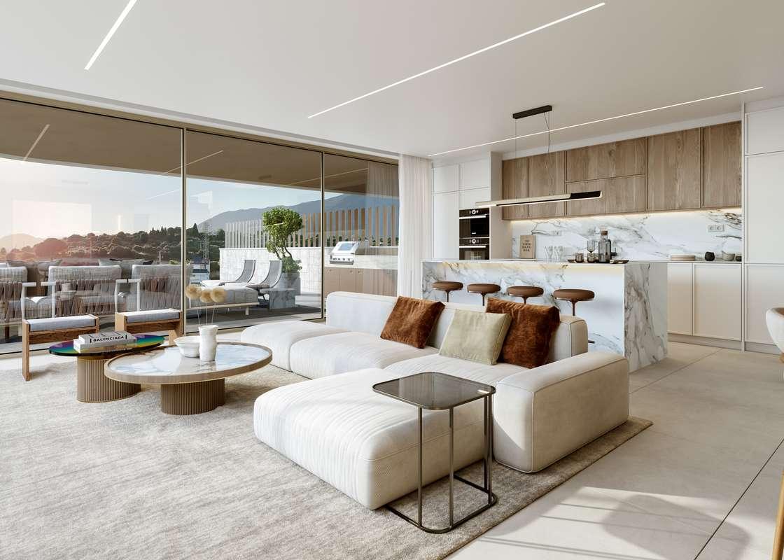 Fantastique sud-ouest face à trois chambres duplex penthouse situé dans la prestigieuse communauté fermée en bord de mer de Menara Beach, Estepona