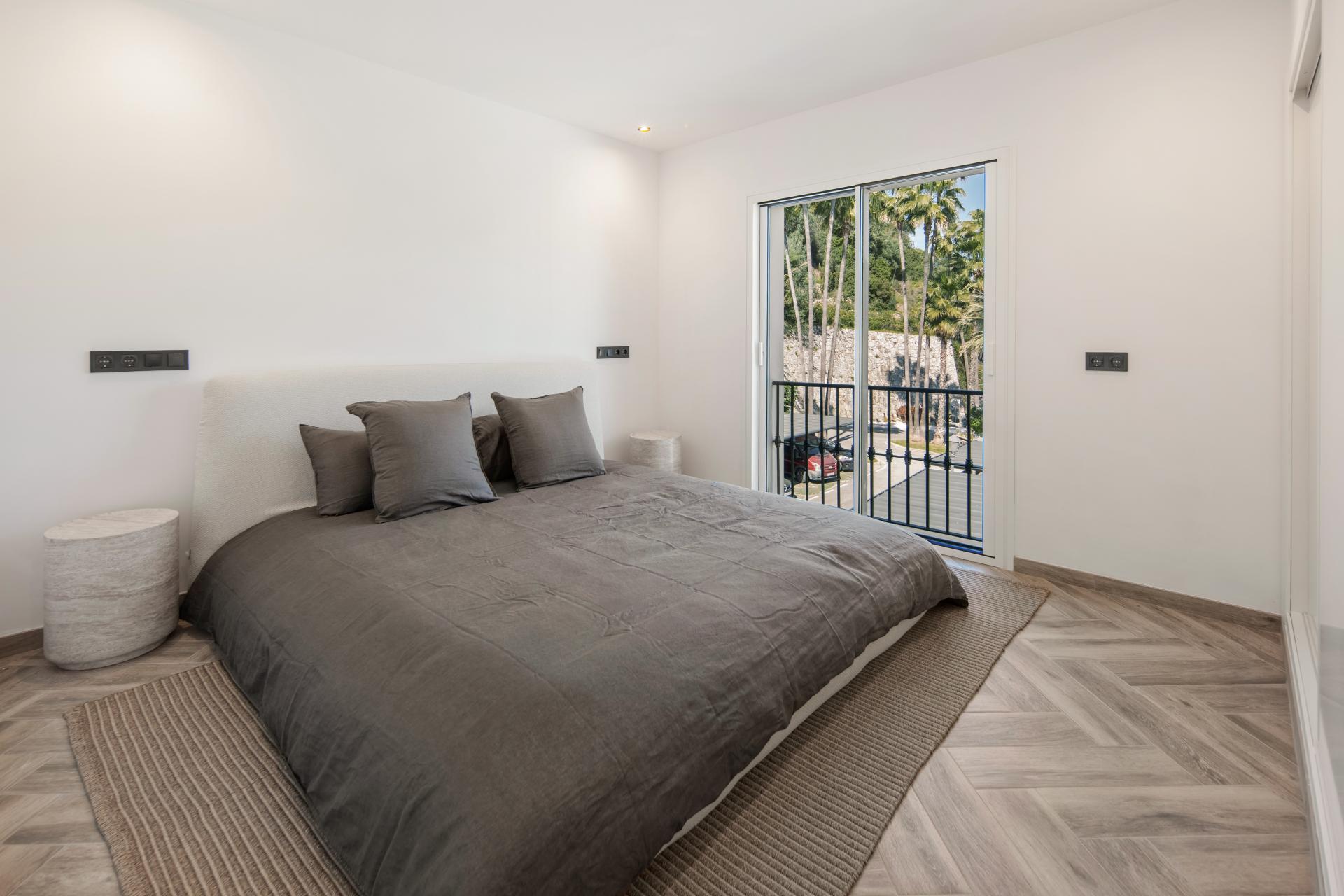 Magnifiquement redessiné et vendu entièrement meublé, l’appartement bénéficie de finitions haut de gamme dans toutes les pièces. Chacune des trois chambres spacieuses dispose de placards intégrés. La propriété propose un élégant espace de vie en open space, créant une circulation lumineuse et harmonieuse entre le salon, la salle à manger et la cuisine — idéal pour un style de vie méditerranéen moderne.