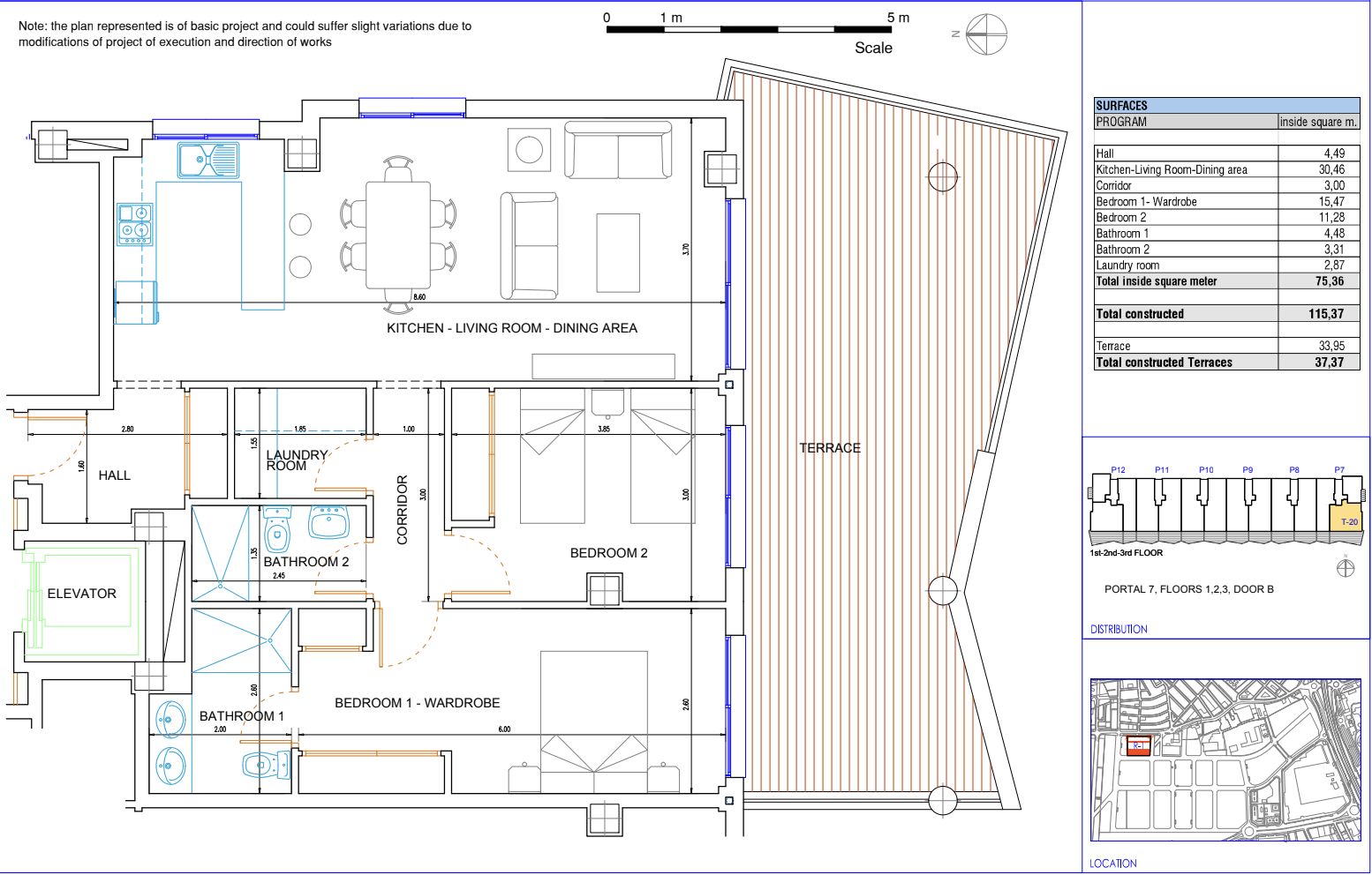Appartement à vendre à Las Lagunas, Mijas Costa avec 2 chambres , 2 salles de bain, 1 en-suite bathroom, construit en 2020 et a piscine (communautaire), garage (privé) et jardin (communautaire). Dimensions: 115m² construit, 100m² intérieur et 37m² terrasse.