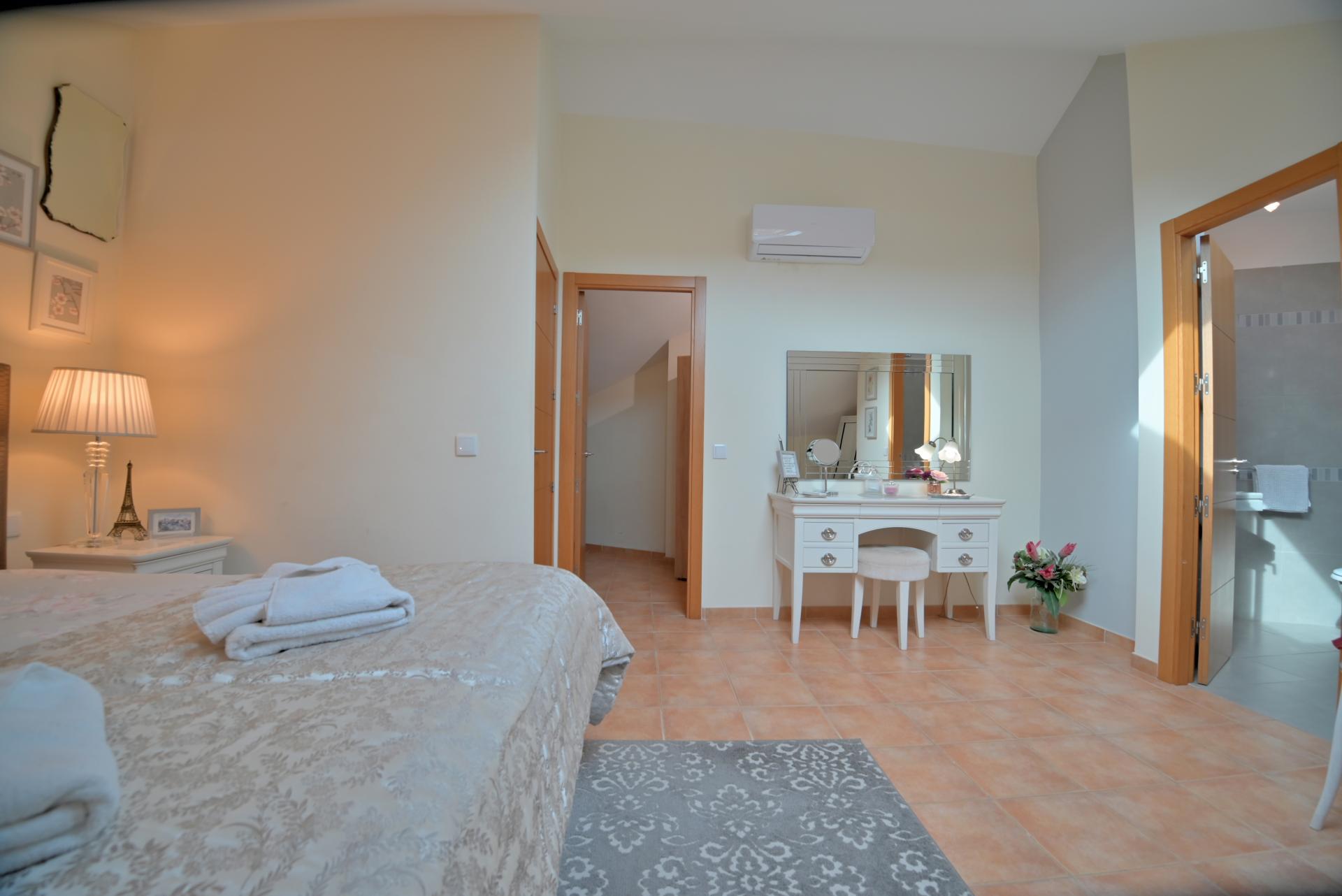 À l’étage supérieur se trouve une vaste suite parentale avec salle de bains privative, une pièce avec espace de rangement supplémentaire et suffisamment d’espace pour ajouter un lit supplémentaire ou un berceau. Les hauts plafonds et un puits de lumière inondent la pièce de lumière naturelle.
